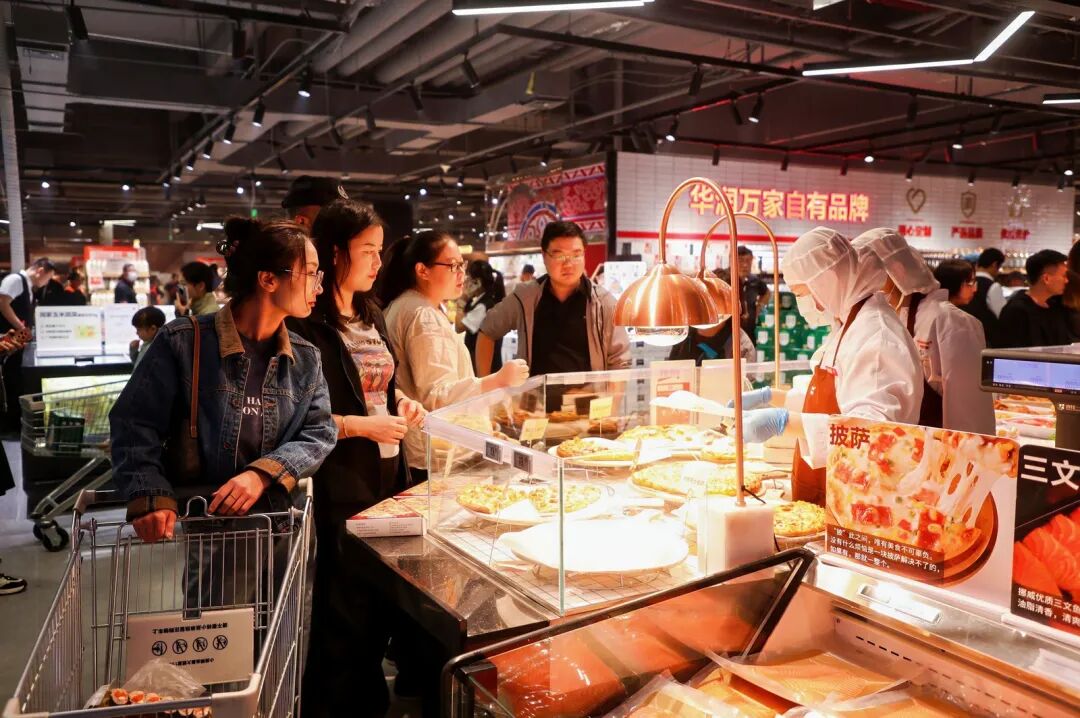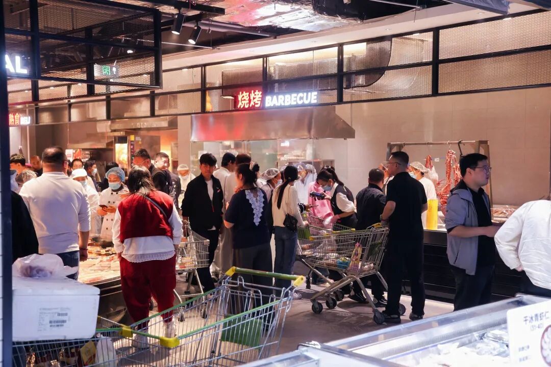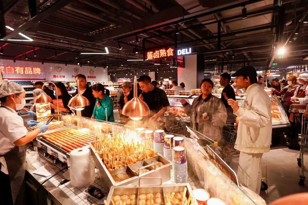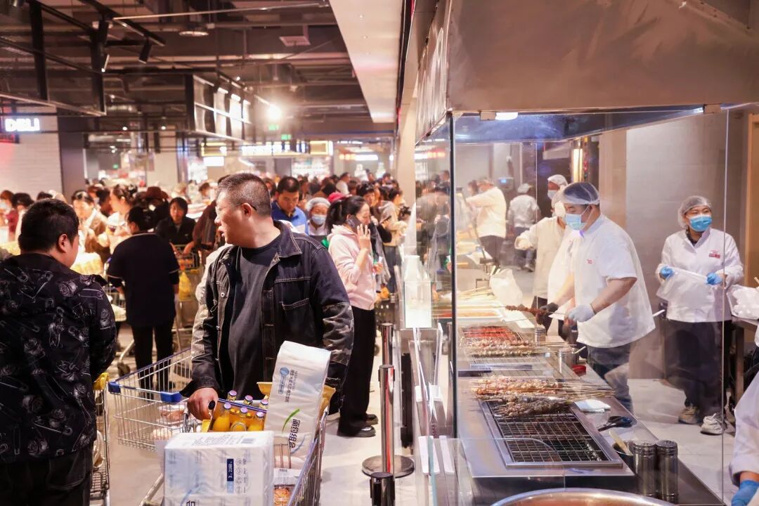 如果说嗅觉,是烟火气的一种表达方式,熟食、面点、轻食、切配菜、调理类,则是给顾客带来视觉+味觉的双重冲击。本次民盛店在华润万家全系统中首次推出整羊现场分割现烤,仅采购现烤炉就投资十几万元,让顾客能够目睹现切、现串、现烤的全过程,用市井烟火气拉近与顾客的距离,椒麻鸡、烤鸡、甜肠、鸭头、披萨、汉堡、日式料理、轻食餐饮等色香味俱全的现制食品,不仅勾动顾客的食欲,同时让顾客感受到看得见的安全感。