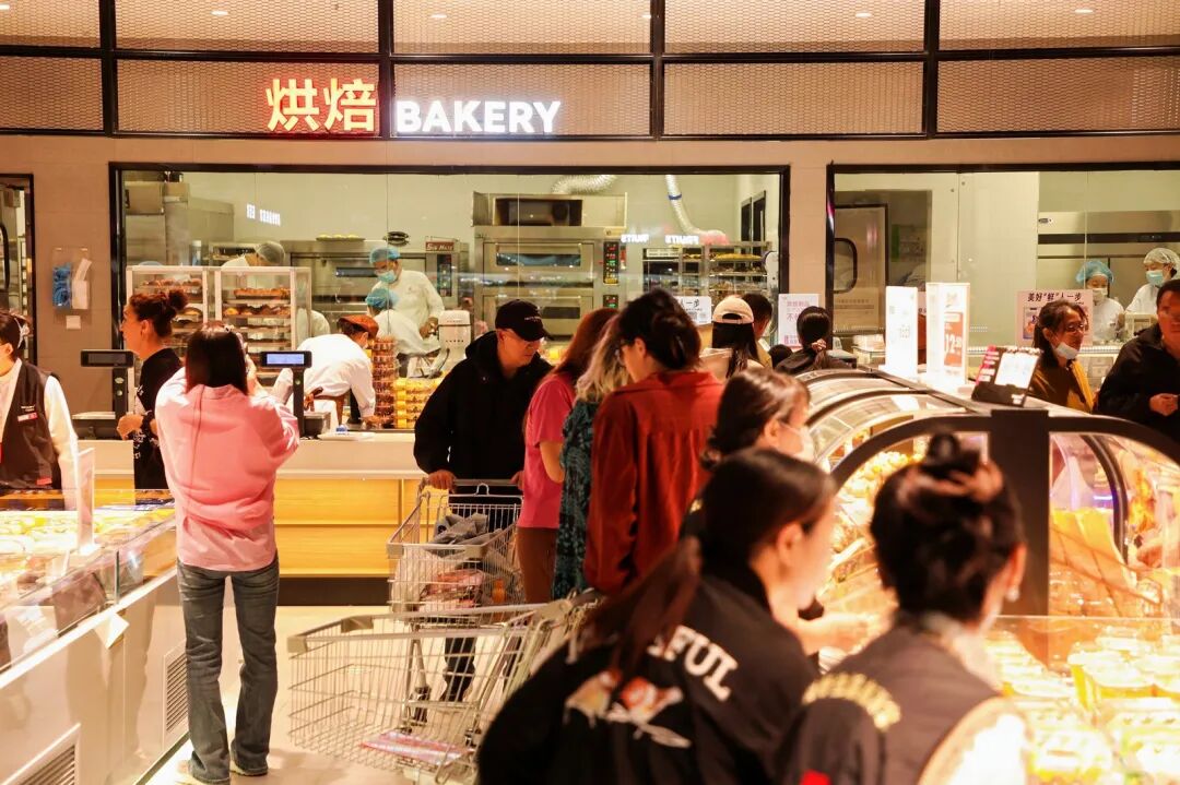 面积加大的烘焙区域位于超市核心区域,顾客在选购日常生鲜百货的同时,即可轻松选购到当日出炉的新鲜商品。用媲美独立烘焙店的新鲜品质、触手可及的超市便利、亲民合理的价格,重新定义了超市现烤品类,宣告超市烘焙从“填饱肚子”迈向“滋养生活”的新阶段,花边蛋挞、黄油手撕包、松绒红豆吐司、马里奥面包、脆皮小巨蛋、瑞士卷、迷你马卡龙等人气单品全品展现,不仅极大方便了追求生活品质的都市人群和家庭客群,也让最新鲜的面包、蛋糕、西点触手可及。