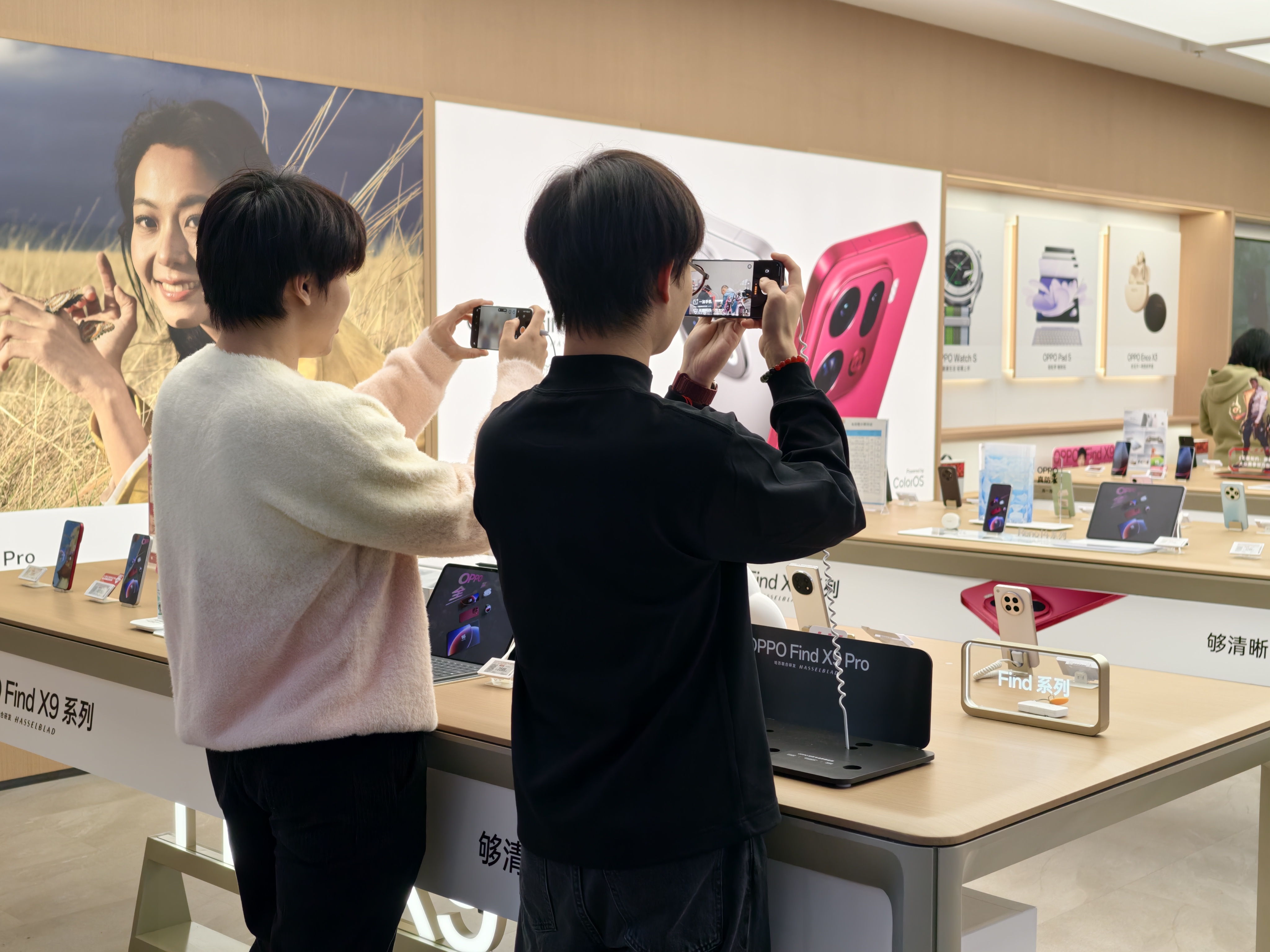 仅隔一天,OPPO正式发布Find X9系列。OPPO首席产品官刘作虎在发布会上表示,Find X9 Pro是“万元以内最值得购买的‘相机’”,明确其专业影像定位。该系列全球首发全焦段哈苏8K超清照片与4K超清实况照片直出功能,Pro版更搭载哈苏真2亿长焦镜头,进光量提升140%,获得了无数专业旅拍摄影爱好者的青睐。