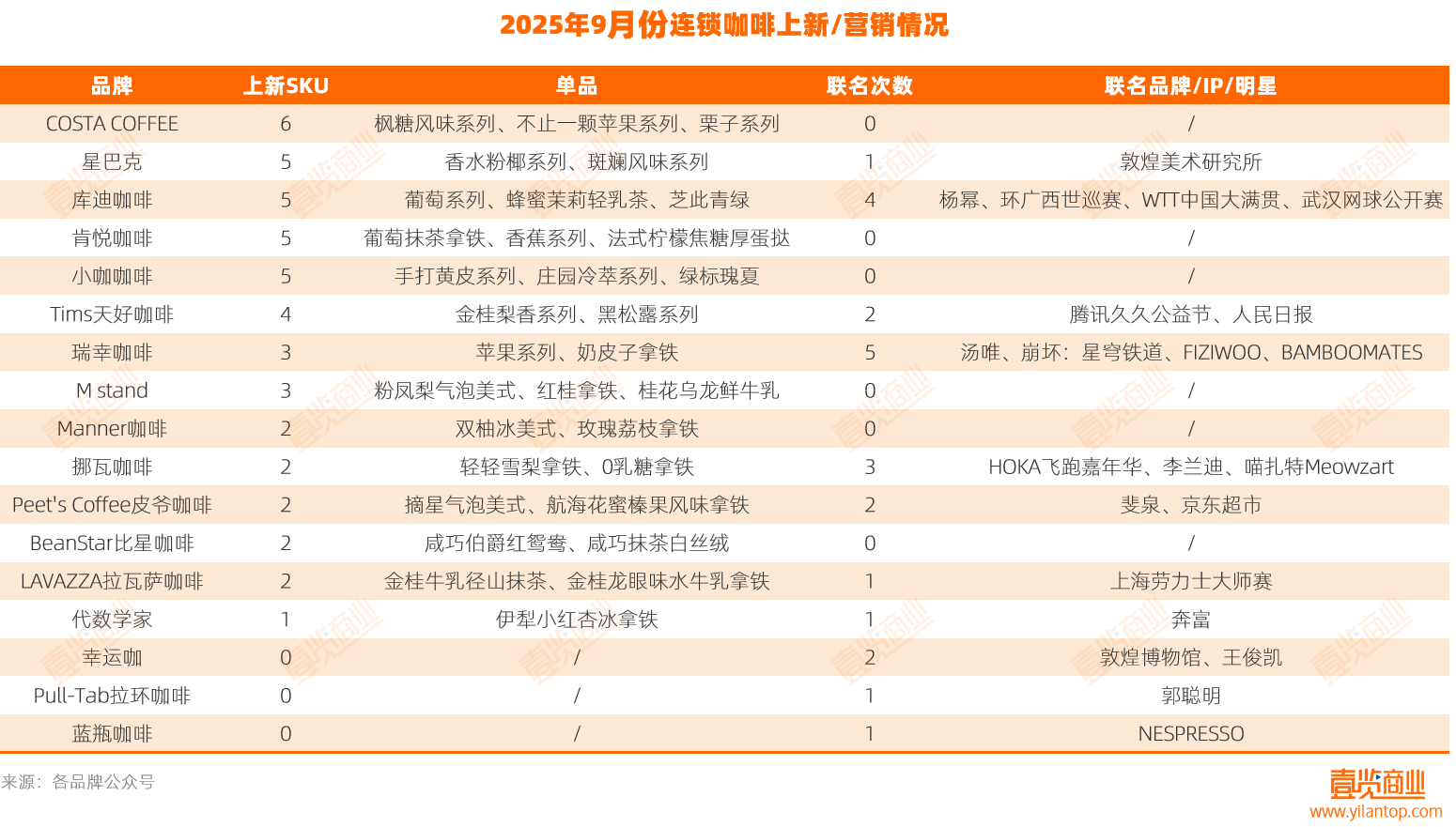 与此同时,COSTA、肯悦、Manner等品牌在9月并未开展联名活动,更倾向于依托自身品牌影响力与产品创新驱动增长,显示出不同品牌在营销路径上的差异化选择。