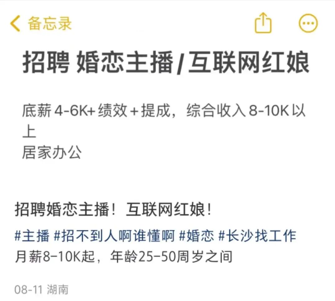 不仅如此,除了像李大姐这样的副业或兼职红娘外,如今还有专门的职业红娘,由公会招募,一个月底薪4000至6000元,还有绩效和提成,并且支持居家办公,获得不少宝妈们的亲睐,不少人在招募的帖子下评论咨询。