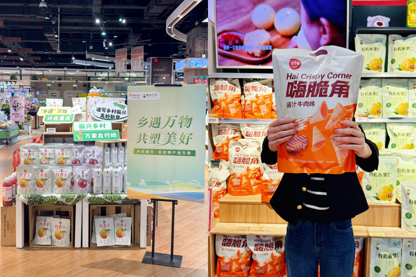 展销活动期间,深圳、天津、南京、西安四座城市的华润万家门店同步化身“乡土风物馆”。走进超市,额吉淖尔盐湖的咸鲜、大巴山腊肉的熏香、潮汕牛肉丸的弹嫩扑面而来,各地展位前悬挂的产地故事牌,将草原、深山、海滨的风土人情娓娓道来。