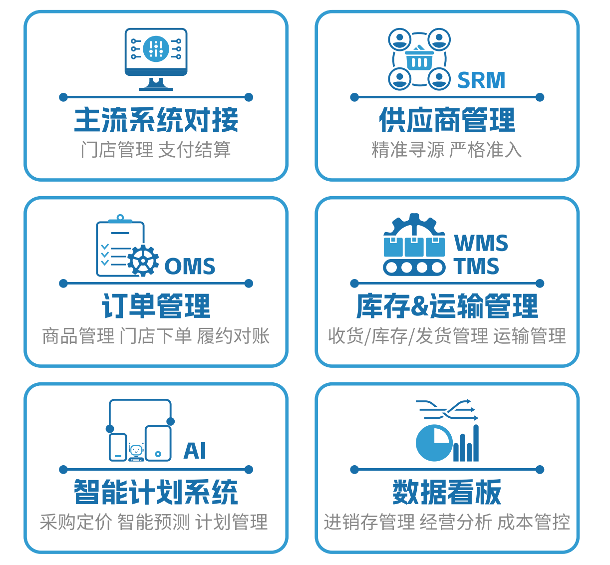 在数字化赋能层面,搭建集SRM、OMS、WMS、TMS为一体的数字化管理中台,彻底打通全国各区域仓储、配送、采购的数据壁垒,实现 “全国供应链一盘棋”的可视化、可追踪、可管控:不仅能将寻源、招标、计划、供应商管理、对账等环节全部线上化,减少线下沟通成本,数据更清晰;还能实时监控各仓库库存余量、周转数据、临期呆滞情况,配送温度、时效、运输轨迹全程可追溯;终端收货实现无纸化签收,彻底解决过去供应链、门店、财务部门头疼的单据管理难题。
