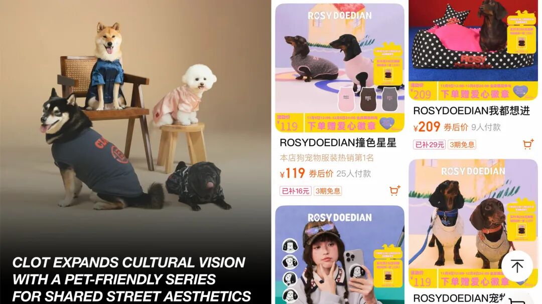 今年11月初,陈冠希的品牌CLOT推出涵盖T恤、荆棘卫衣、中国丝绸外套、方巾及宠物碗等单品的宠物系列产品。还与说唱歌手马思唯主理的AFGK合作推出了“A FEW GOOD DOGS”联名系列,打造两款限量宠物与成人服饰,吸引双方粉丝群体的关注。