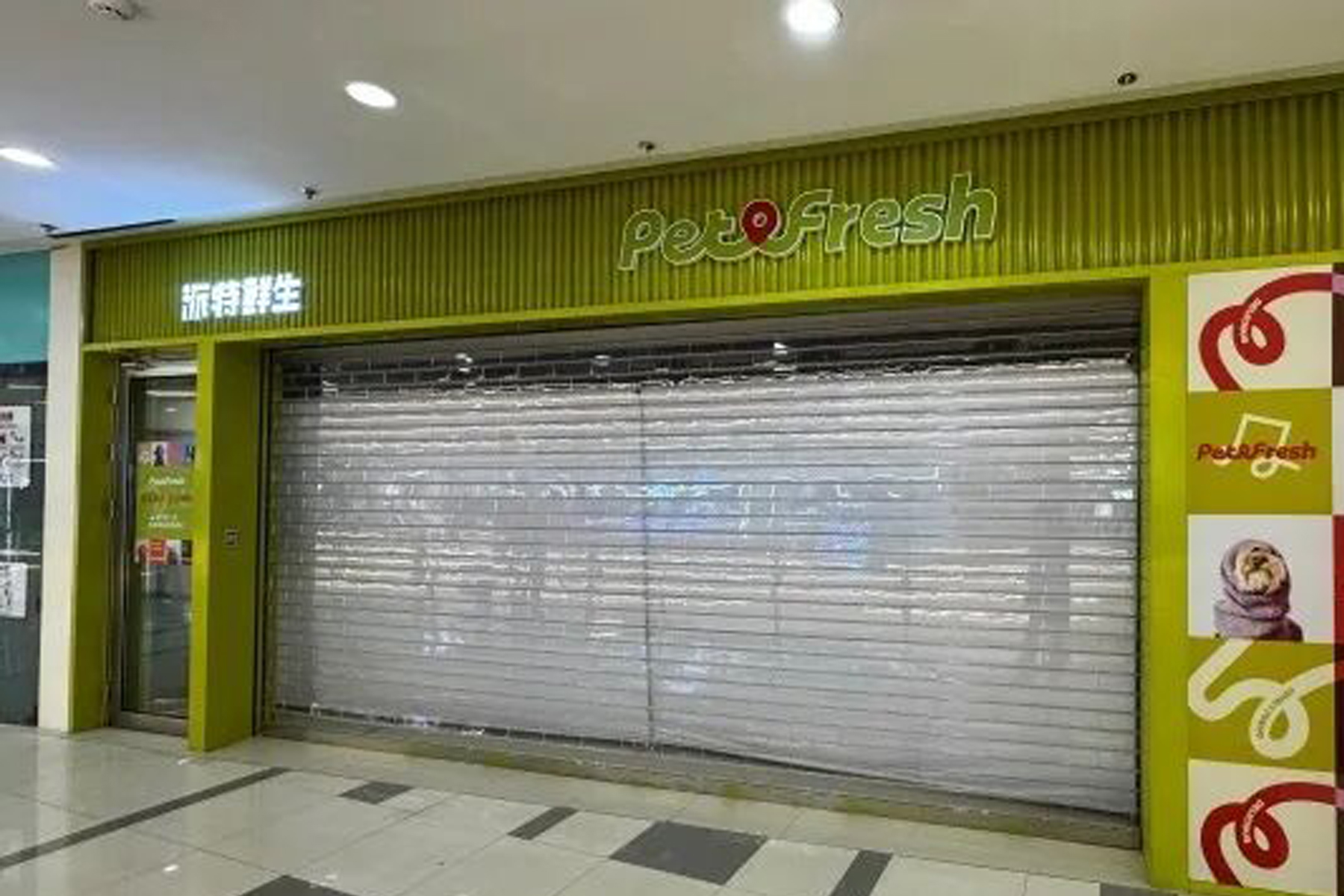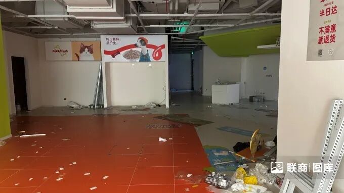 这些门店现场基本上只剩下“宠是家人,爱是鲜度”的品牌标语以及门头LOGO等。透过玻璃可以看到,内部较为凌乱,也并未有相关闭店告示。