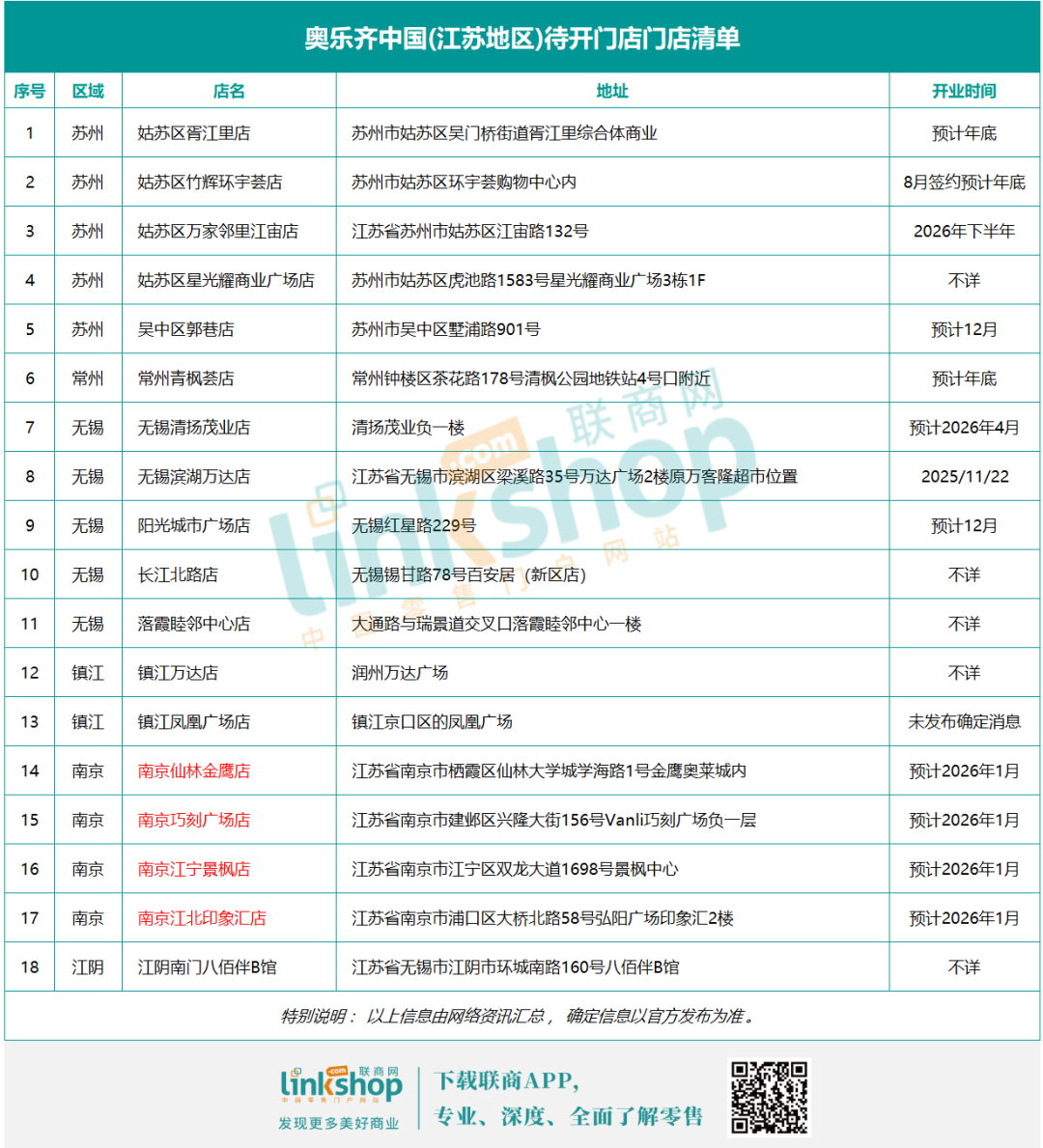 未来,随着发展城市的明确,或许在江苏地区将听到更多的城市迎来奥乐齐签约及开业的消息,奥乐齐在江苏的布局网络也将越来越密集,并且这种稳稳的生长性策略,也可以保障奥乐齐门店经营质量更加扎实。