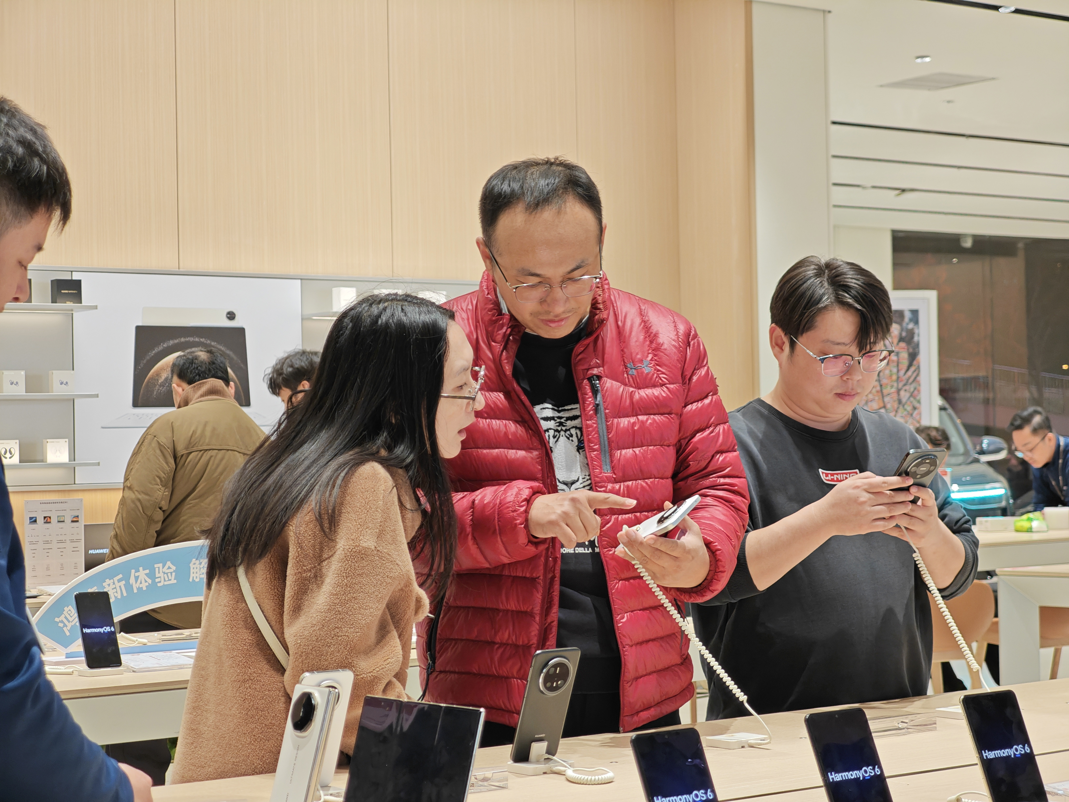 图为消费者在京东MALL第一时间上手体验华为Mate 80新品