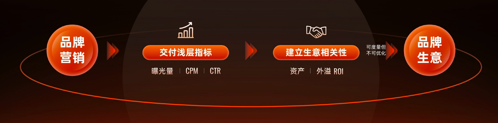 在大多数品牌的传统认知里,品牌营销更多意味着“心智建设”。平台交付的指标是曝光、CPM(千次展示成本)、CTR(点击率),评价的是覆盖规模与触达效率。这套体系构成了过去十多年品牌营销的基本逻辑:先把声音做大,至于能否落地到生意,是后链路的事。