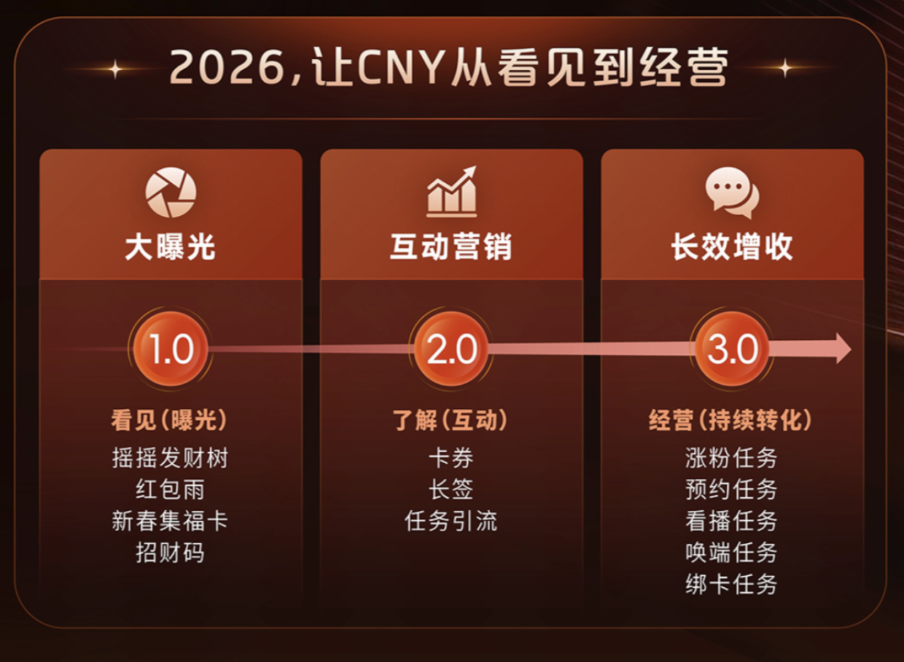 以即将到来的新年营销场景为例,壹览商业了解到,马年春节,快手给品牌带来了更有年味营销资源。比如节日期间,品牌可以依托红包雨、集卡、招财码等具备极低参与门槛的互动工具实现快速破圈,让原本陌生的用户第一次与品牌建立连接;随后,通过卡券权益、商品签到、任务激励等动作,让用户进一步留痕,并在直播间、短视频、商城货架等多个场景中承接订单。