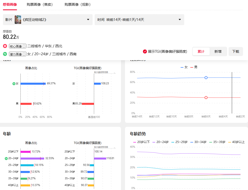 (《疯狂动物城2》的“想看”用户画像,图源猫眼专业版数据)