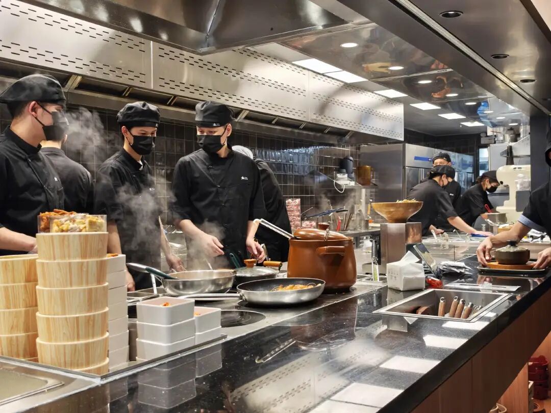 与常见的餐厅明档现做不同,新太二直接撤掉了明档玻璃,更加直观呈现了厨师的颠勺、爆炒、备菜全过程。这不仅打消了消费者的“预制焦虑”,还增加了就餐的互动与氛围感。