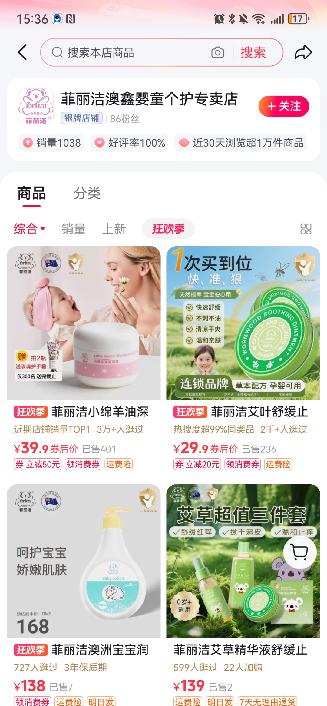 而菲丽洁母婴天猫旗舰店仍在正常运营,该店铺显示为14年老店,店铺粉丝超6.1万人,店铺内包含了面部护理、身体特护、洗发淋浴、美丽妈妈、日常清洁等五类产品,涵盖了宝宝面霜、润肤乳、爽身露、止痒膏等27个商品在售。其中,菲丽洁小绵羊油滋润霜为店内销量最高,显示已售出9000+件,且一周内有300+人购买。