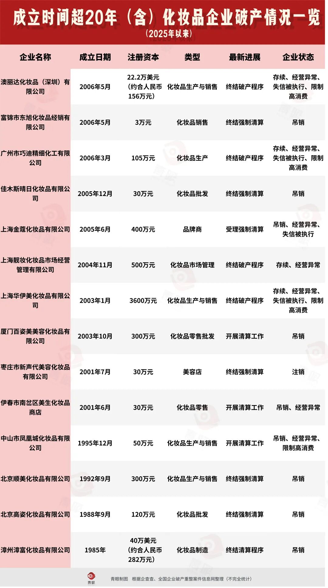 总的来说,这些老牌化妆品企业的破产倒闭,也给行业以警示:即便是拥有20年的历史,也并非安全线,企业没有永恒的护城河,需要始终保持“初创心态”,时刻保持着超强的创新力、运营力、组织力等综合实力,才能抵御行业的“大浪淘沙”。