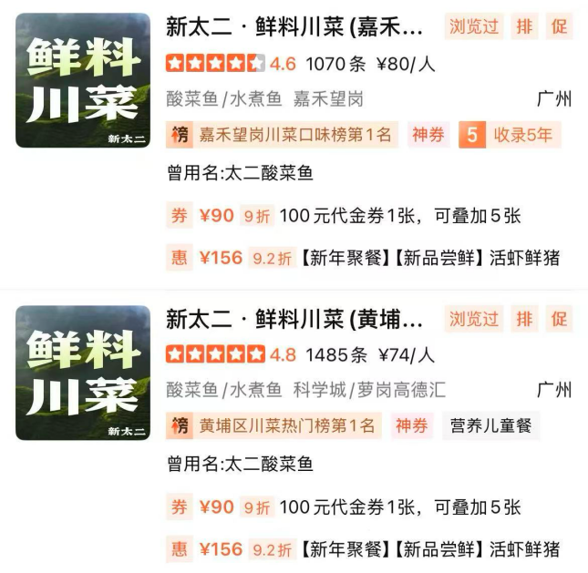 12月底,几家“新太二·鲜料川菜”门店(下文简称为“新太二”门店)在广州和佛山市悄然开业。