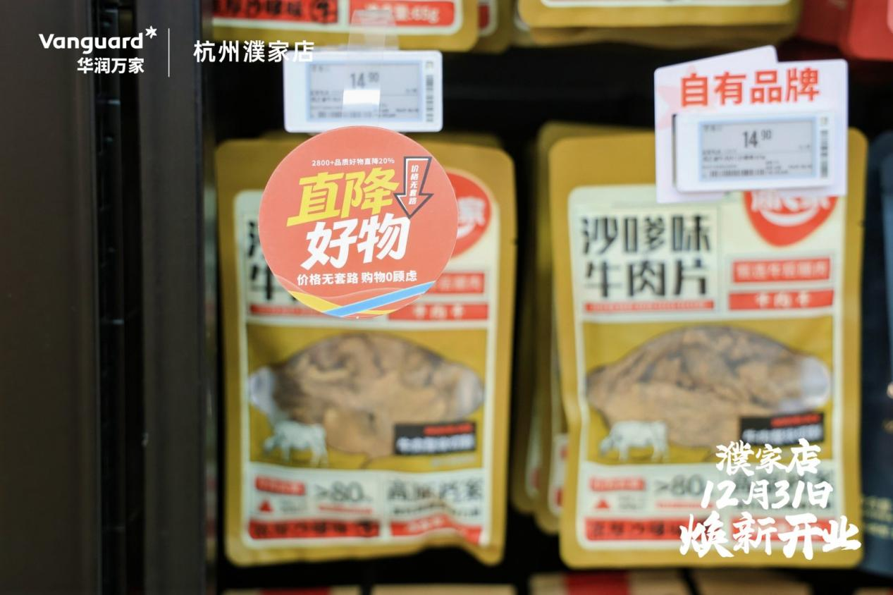 从商品价格来看,用天天平价取代周期性促销。门店对超2800款商品实现价格直降,平均降幅达20%,大量商品的日常售价是直接锚定过去的“促销底价”甚至更低水平。以生鲜档口的烤肉肠为例,此前日常的时候单价8元,促销可能打六折卖4.8元,而这次价格直降到4元。华润万家浙江区域负责人表示,这不仅是回应消费者对于硬折扣的需求,更深层的意图是建立透明、稳定的价格信任,让消费者无需算计促销周期,从而提升复购率。