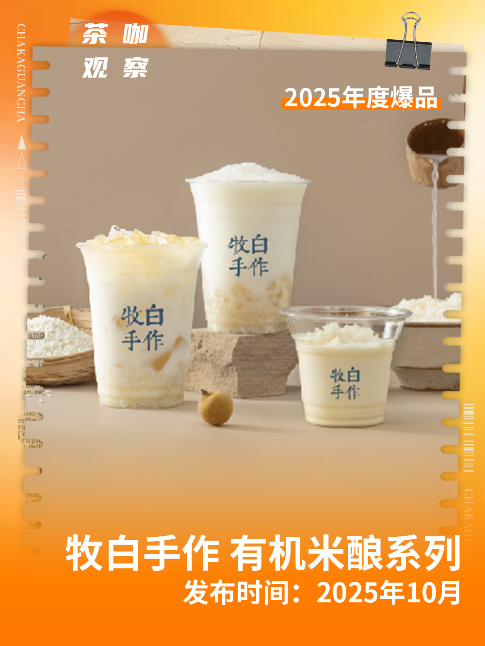 牧白手作将目光投向传统食材,10月上新的有机米酿系列,结合鲜牛乳,并搭配龙眼、抹茶等不同原料,为消费者带来了兼具传统底蕴与新式口感的独特体验。