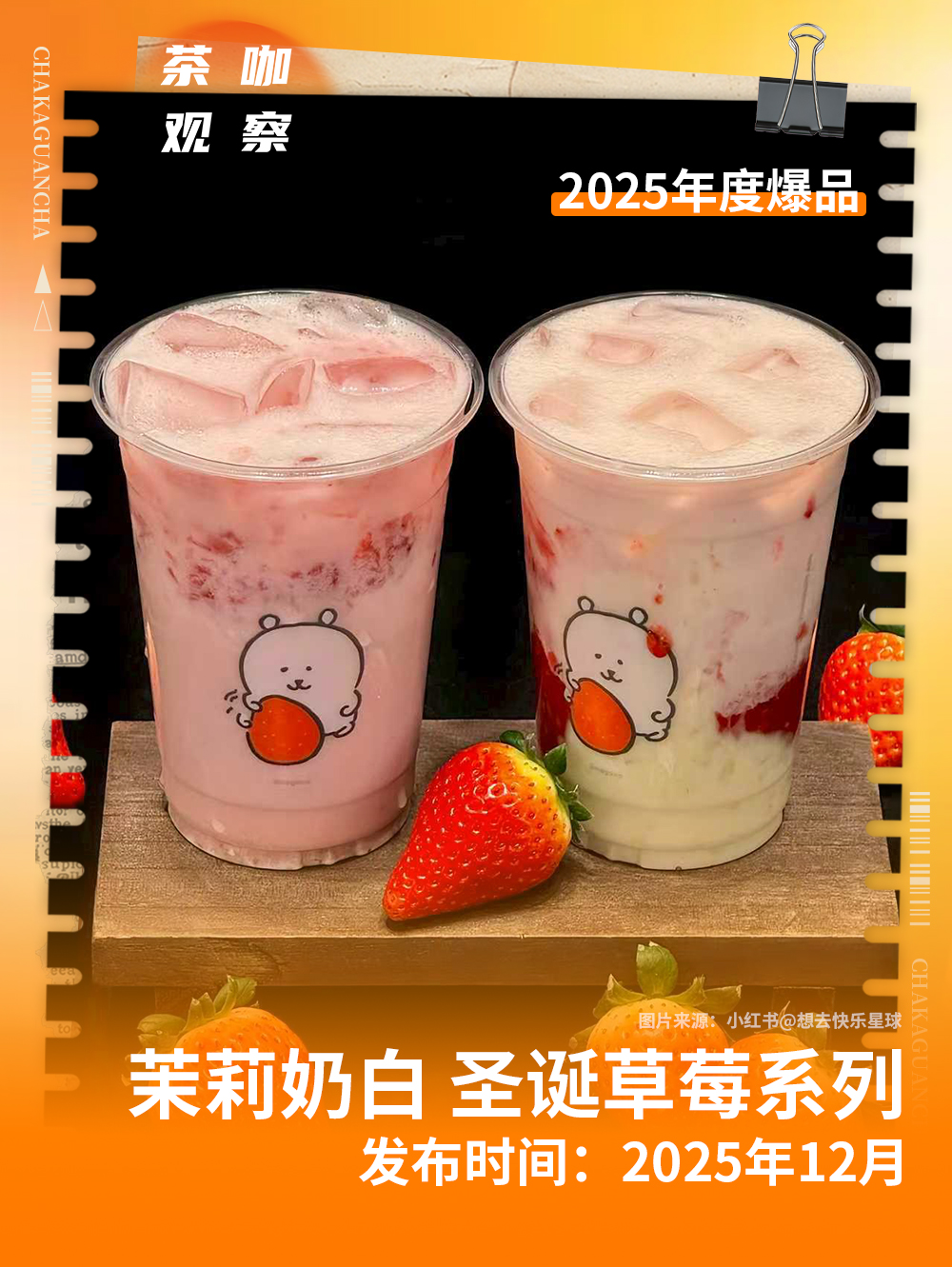 茉莉奶白携手IP“自嘲熊和朋友们”推出圣诞草莓系列,借助自嘲熊的广泛影响力和情感联结价值,触达年轻消费群体,首日热销36万杯。