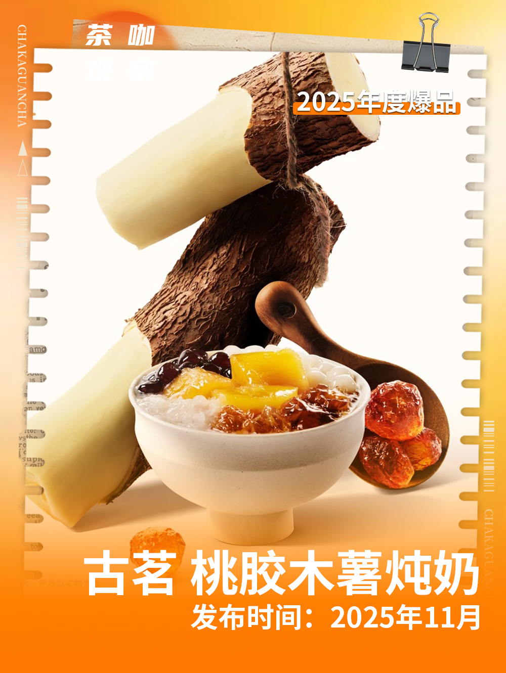 古茗把握糖水与茶饮在原料上的重合,2025年11月上新桃胶木薯炖奶,将桃胶、木薯、银耳等经典糖水食材融为一体,上线之后多店售罄,迅速成为门店销量top1。
