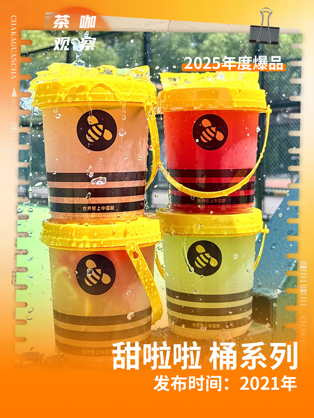 甜啦啦首创的桶系列,将鲜果与经典茶底搭配,2025年销量近1亿杯。
