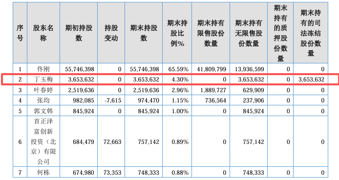据创尔生物2025年半年报披露,公司第二大股东丁玉梅持有约365万股,占总股本的4.30%,该部分股份目前处于冻结状态。