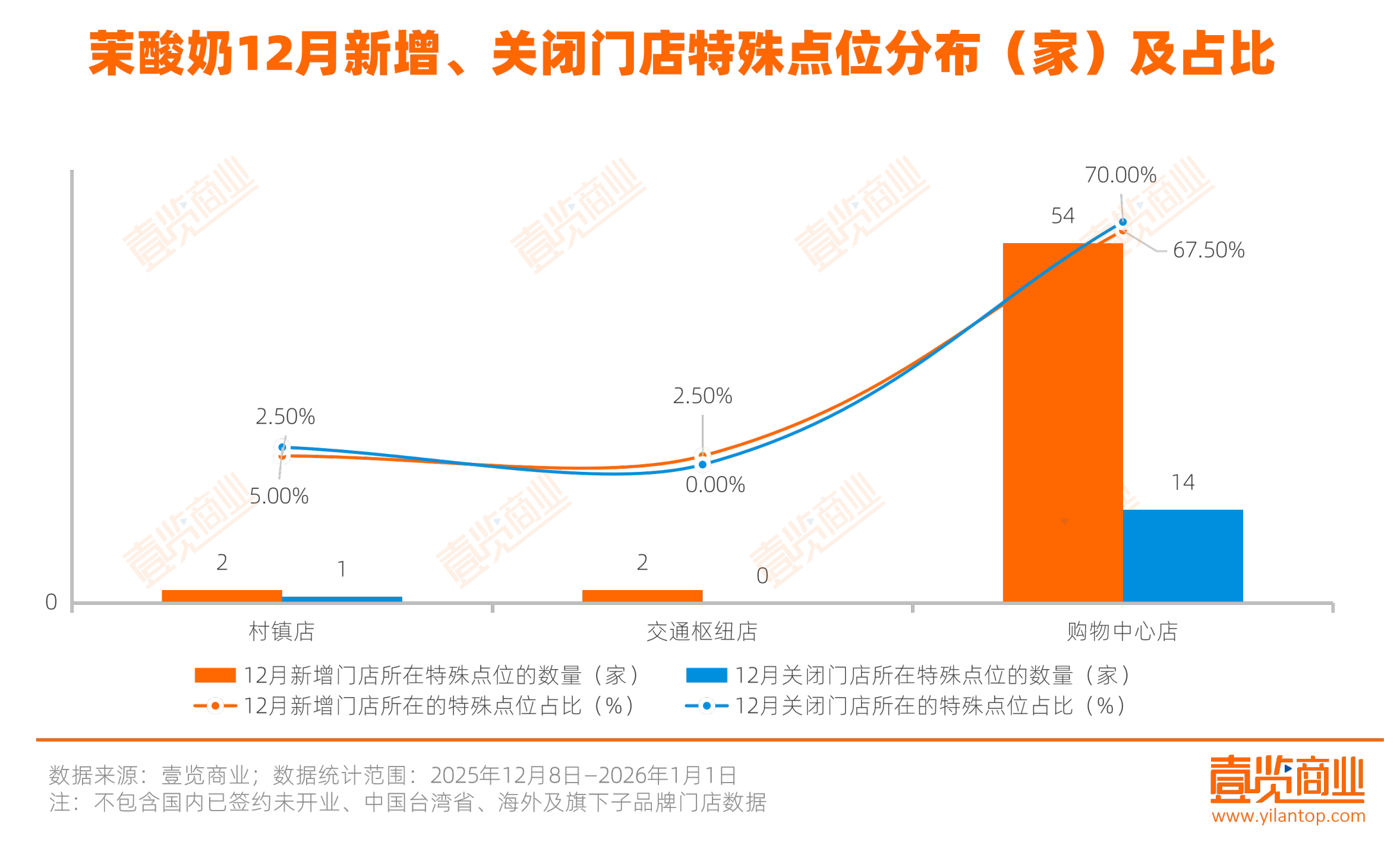 从特殊点位来看,12月门店调整的重心集中在购物中心,70.00%的新增门店集中在此,而闭店门店也有67.50%。说明品牌可能在用新开的优质点位,逐步替换掉盈利与运营效率较低的门店,从而提升整体盈运能力。