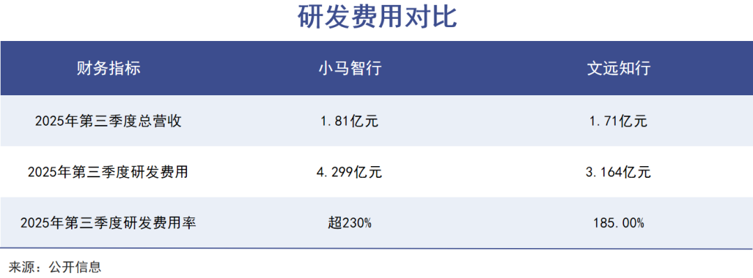 从财务数据看,两家公司都面临“增收不增利”的行业通病。2025年第三季度,小马智行营收1.81亿元,同比增长72%;文远知行营收1.71亿元,同比激增144.3%。然而营收增长亮眼的背后,是亏损持续扩大:小马智行当季净亏损4.38亿元,文远知行净亏损3.07亿元。