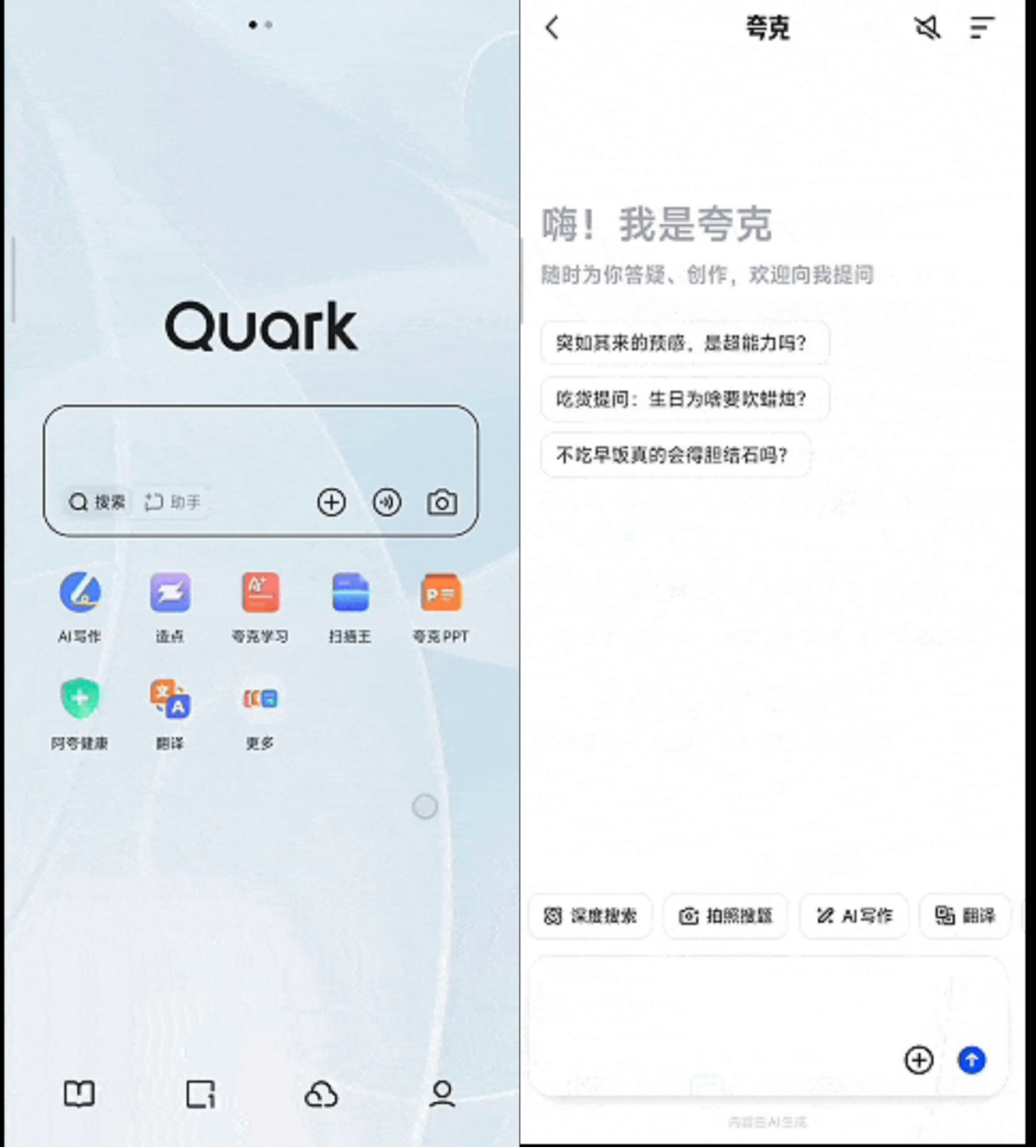 说到这,还得提出一个阿里同样大力倾注资源的业务——夸克。夸克被誉为阿里新四小龙之一,也被推到了AI化的前台。夸克试图将搜索、助手、工具一体化,在千问独立成APP之前,夸克才是阿里AI to C的主要入口,甚至现在属于千问的流量入口,原本也是夸克的。但现在夸克的定位反而变得尴尬,最近一次大动作,变成了宣传其新发布的AI眼镜。