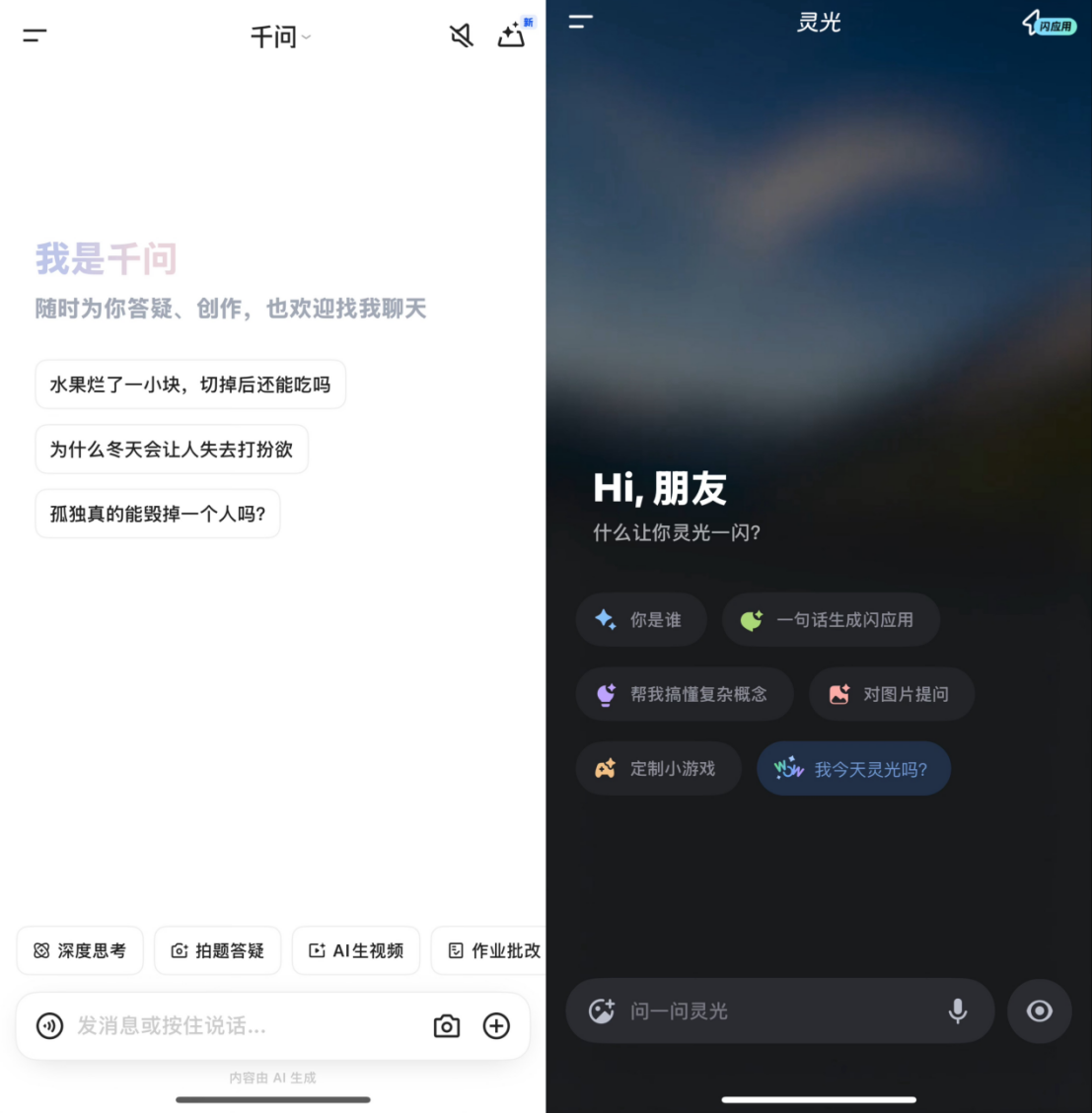 企业层面强调协同并不难理解,毕竟使用场景存在可互补的余地。但问题在于,对普通用户而言,协同是不可感知的,只会考虑一个问题,那就是“该点开哪一个app”。千问与灵光在功能高度重合的情况下,同时被投入大量营销资源推向市场,本质上是在争夺同一批用户的注意力、使用频次与默认入口。