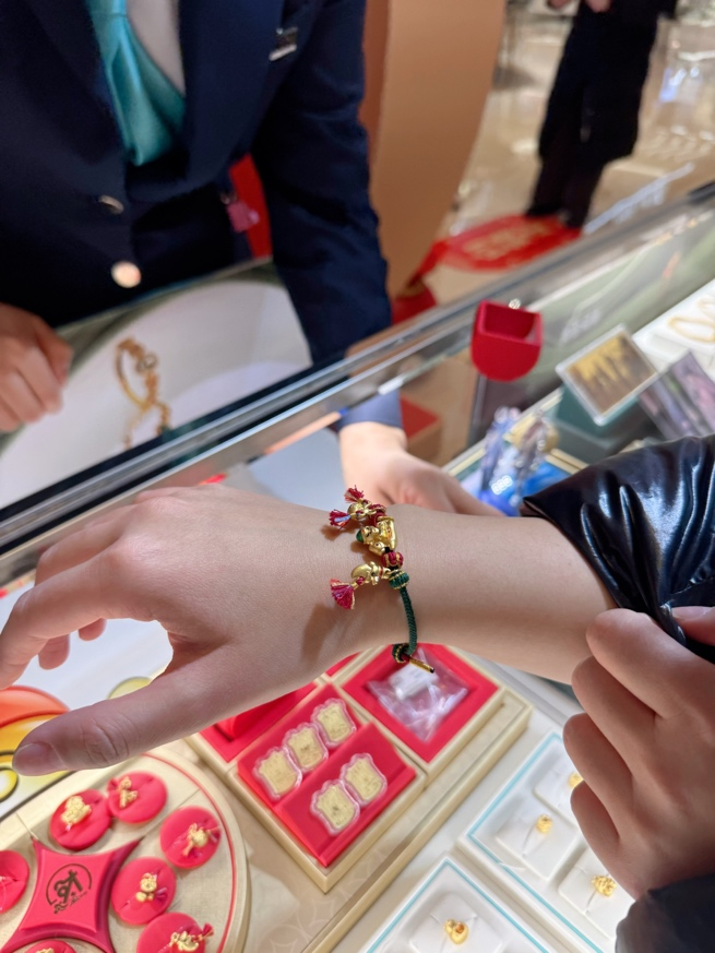 壹览商业了解到,银泰百货的老凤祥“奇骥系列”飞天马明星款一到专柜就售罄,周大福“故宫博物院100周年”四合如意系列、潮宏基萌宠IP等联名款精准契合年轻审美。商场内的多个黄金品牌全新推出的马年生肖挂件、DIY手串等金饰,自元旦起持续热销。