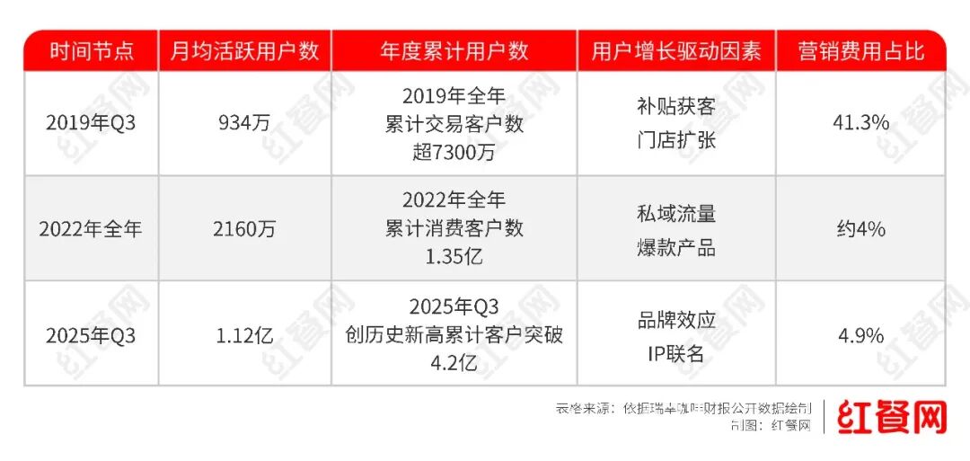 这些举措成效显著,瑞幸咖啡的营销费用占比从2019年Q3的41.3%降至2025年Q3的5%以内,取得了营收、门店数、利润、盈利能力(利润率)等各项指标高速且健康的成长。对很多餐饮品牌来说,关于如何解决日益攀升的营销费用占比问题时,是完全可以“抄作业”的。