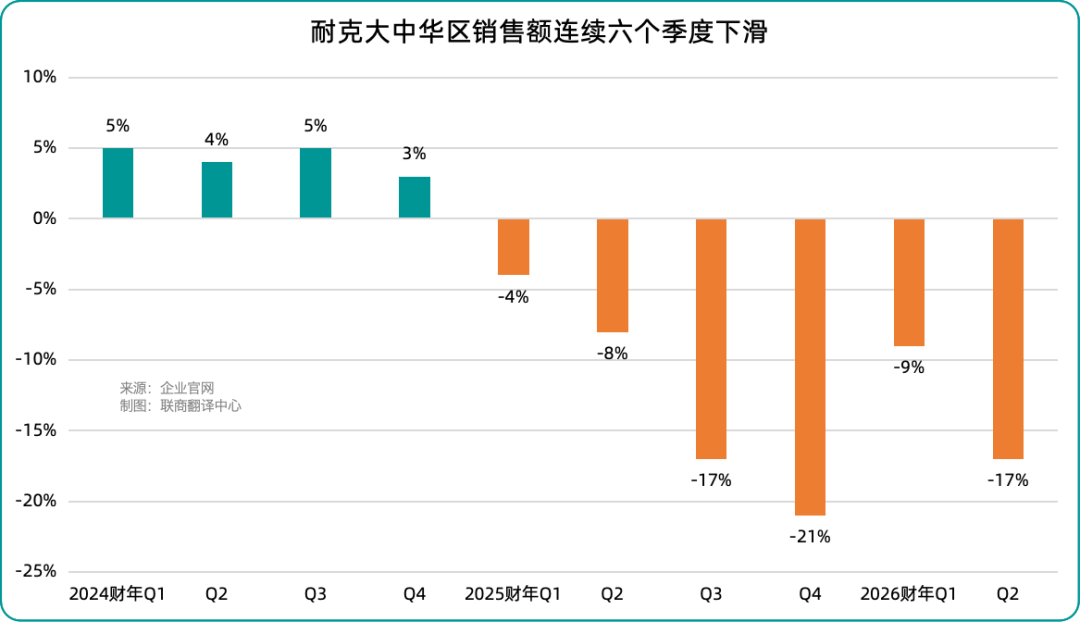 耐克中国持续承压