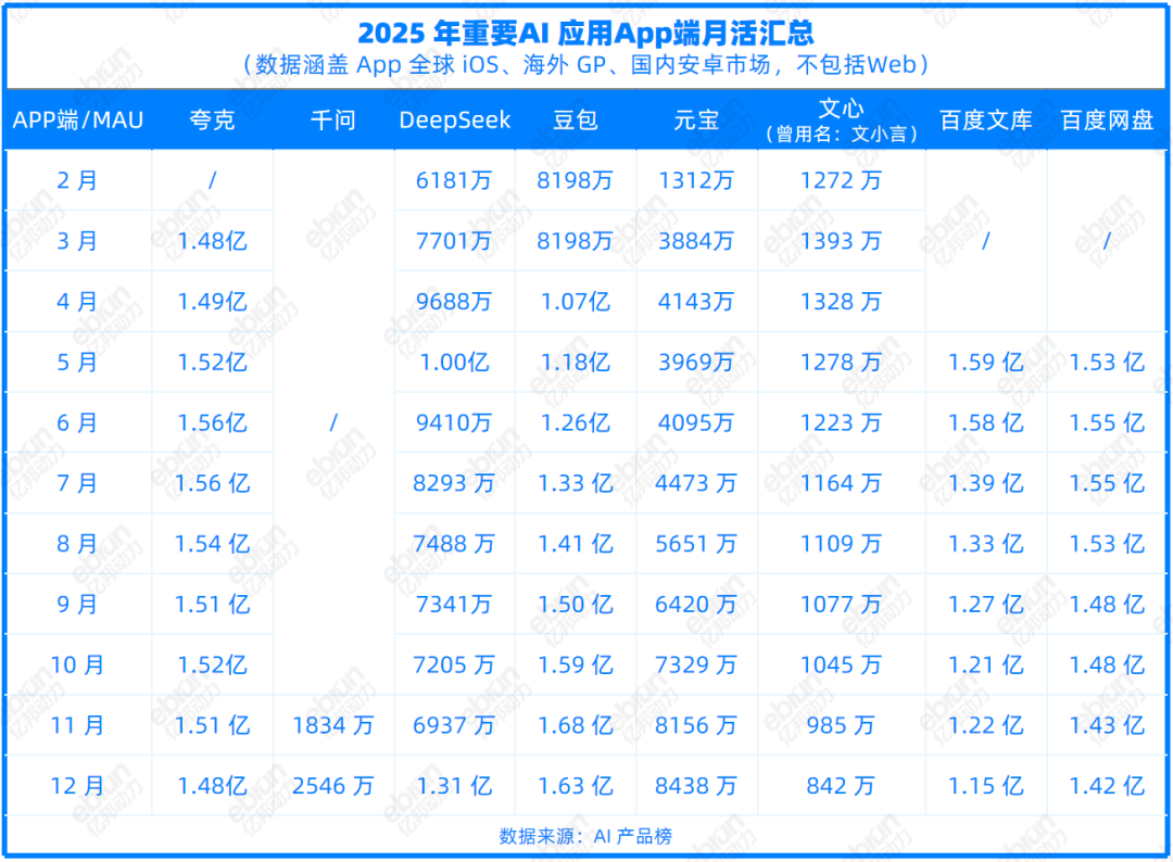 回看过去一年各大AI App的端侧流量就能明白,这场春节AI红包大战,发生在AI应用“渗透率艰难爬坡”期。