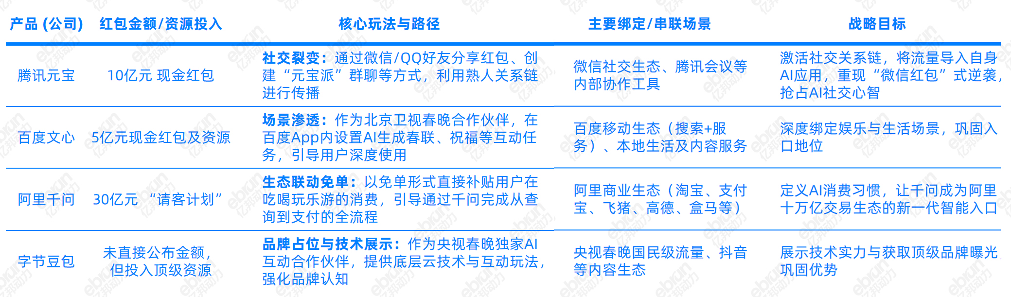 腾讯在赌社交关系能够成为AI时代的护城河;阿里在赌交易场景是AI最具商业价值的落点;百度在赌“搜索”这个古老的互联网行为可以平滑过渡到AI时代——这场战争有明确的时间表:除夕当晚的并发峰值、大年初一的下载榜单、正月十五的留存数据,每一个时间节点都是战况的实时播报。