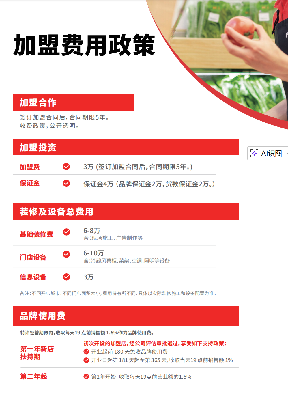 上图为钱大妈招商政策,下图为锅圈招商政策