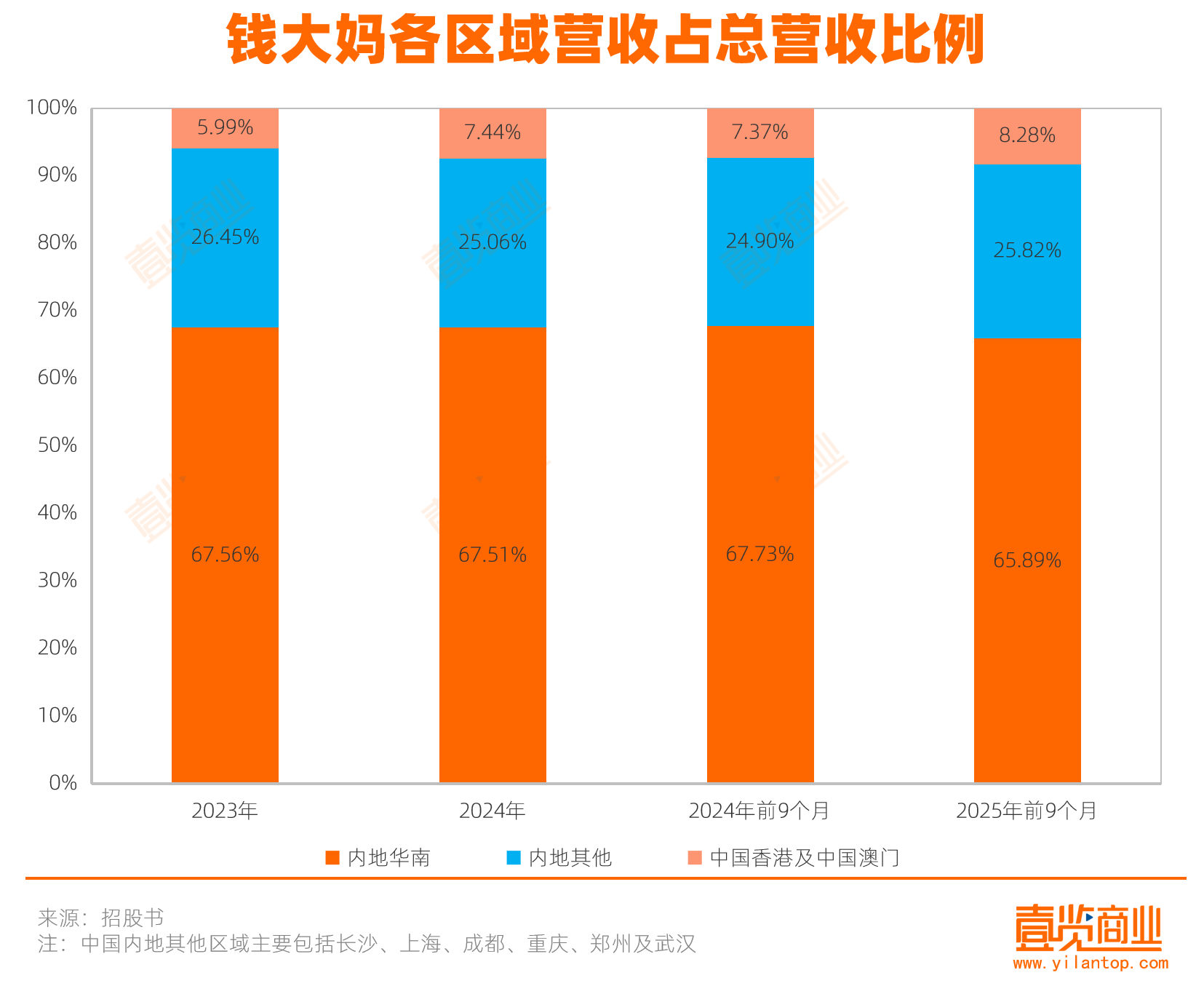 第三,困守华南区域,单店效能见顶。钱大妈业务高度集中于华南,该区域营收占比长期超过65%,毛利率显著高于其他地区,钱大妈在华南地区为12.5%,而内地其他地区仅6%。