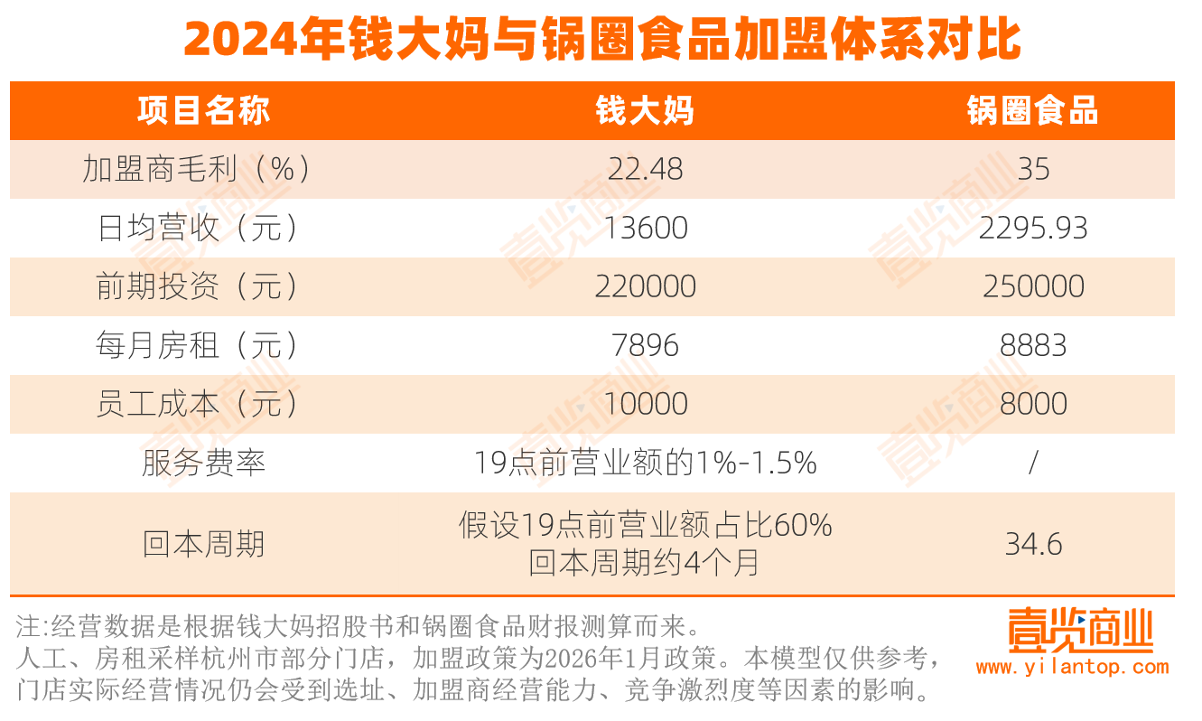 在不考虑水电、损耗等复杂因素的情况下,钱大妈加盟店的理论回本周期可能短至1年内,而锅圈则需两年以上。