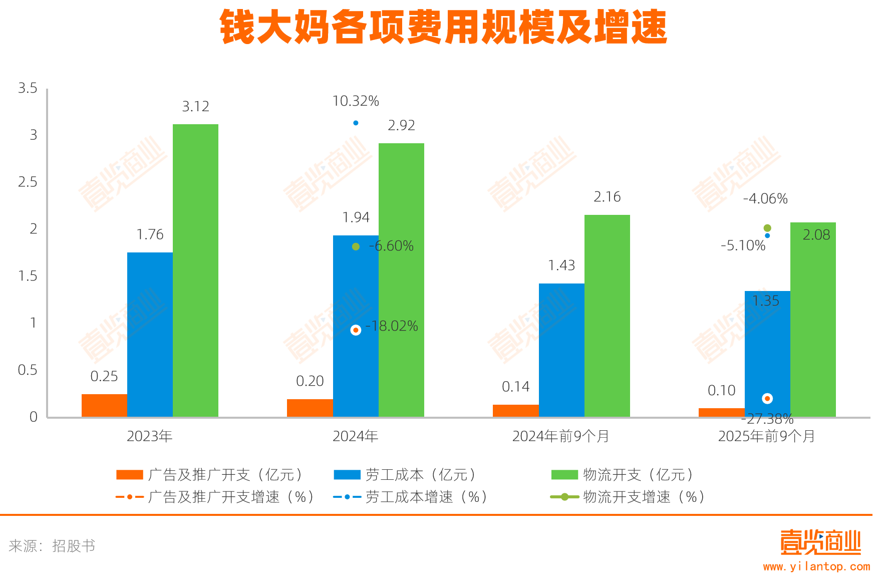其中,广告及推广开支下降幅度最大,从2024年前9个月的1417.7万元下降至1029.6万元,同比下降约27.38%,表明其已放缓烧钱换市场的策略;物流开支从2.16亿元减少至2.08亿元,同比下降4.06%,与营收下降相匹配,应该与提高效率无关;劳工成本也从1.43亿元下降至1.35亿元,同比减少5.10%。