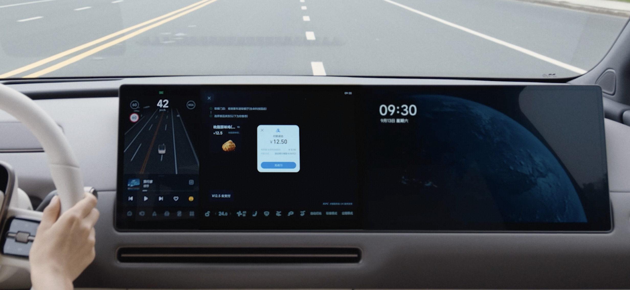 在车载端,用户只需语音输入“帮我来份OK餐“,车机系统即可连接到小K识别最近的肯德基门店,选定餐品、完成支付并开启导航,引导用户取餐。