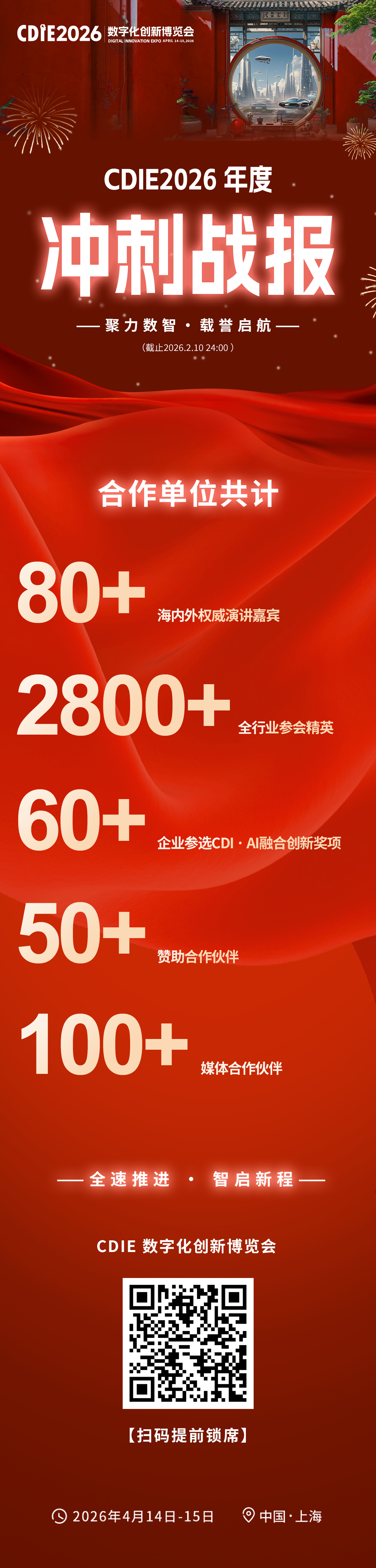 在此关键突破期,2026第十二届CDIE数字化创新博览会 将于2026年4月14日-15日在中国上海举行。