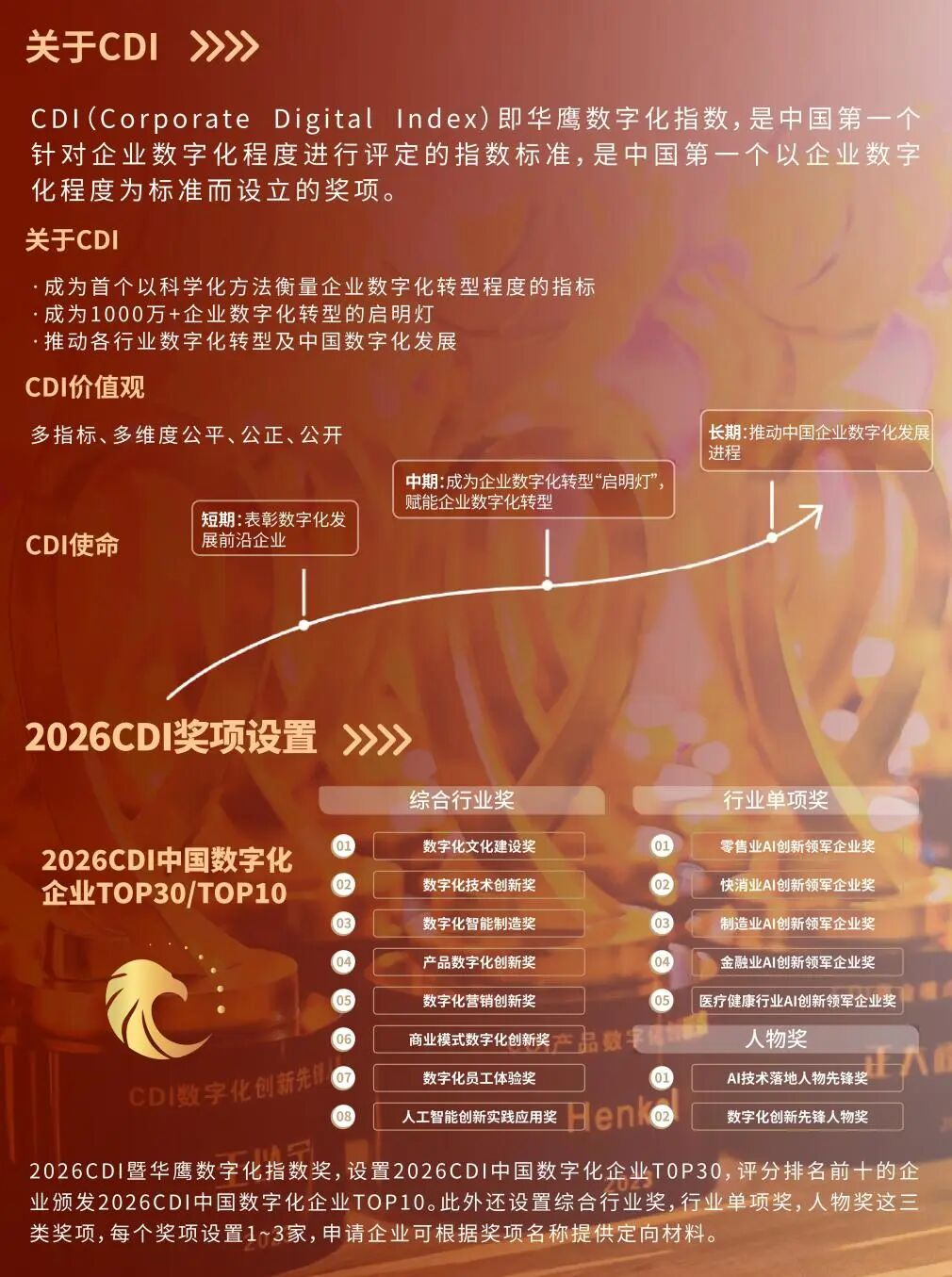 国内首个CDI奖项评选同步开展,以专业权威评价体系,挖掘数字化创新标杆,树立行业典范。多维度布局彰显2026CDIE在资源整合、生态构建、行业引领的强大实力,为企业提供品牌展示、业务拓展、合作共赢的优质机遇 。