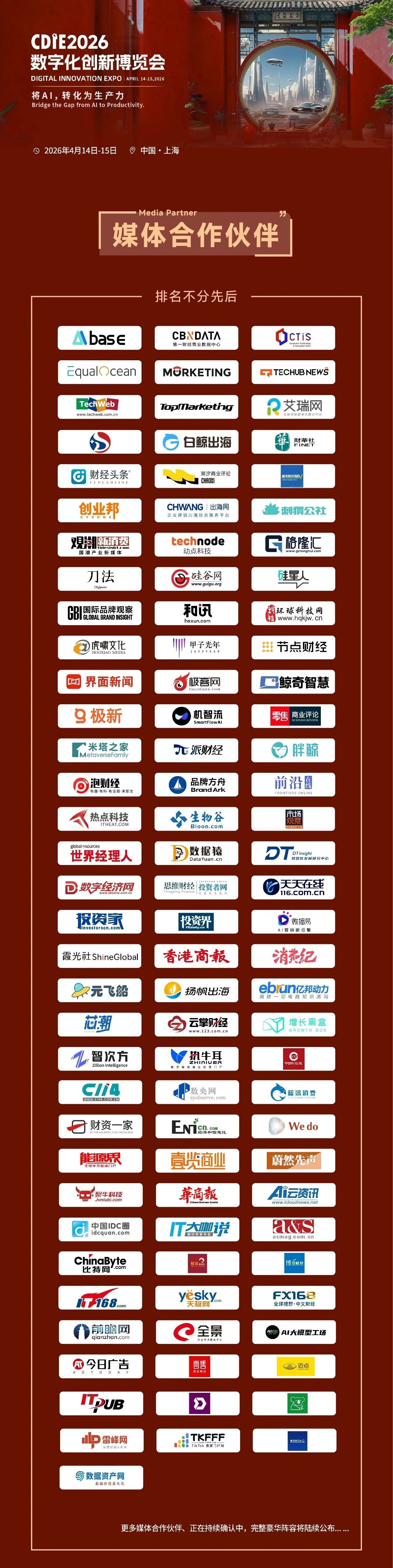 CDIE2026作为数字化领域的年度盛会,其筹备进程始终备受行业瞩目。目前已成功携手100+国内外主流媒体与垂直领域头部媒体达成深度合作,构建起覆盖科技、金融、制造、零售、消费等多个赛道的全媒体传播矩阵。