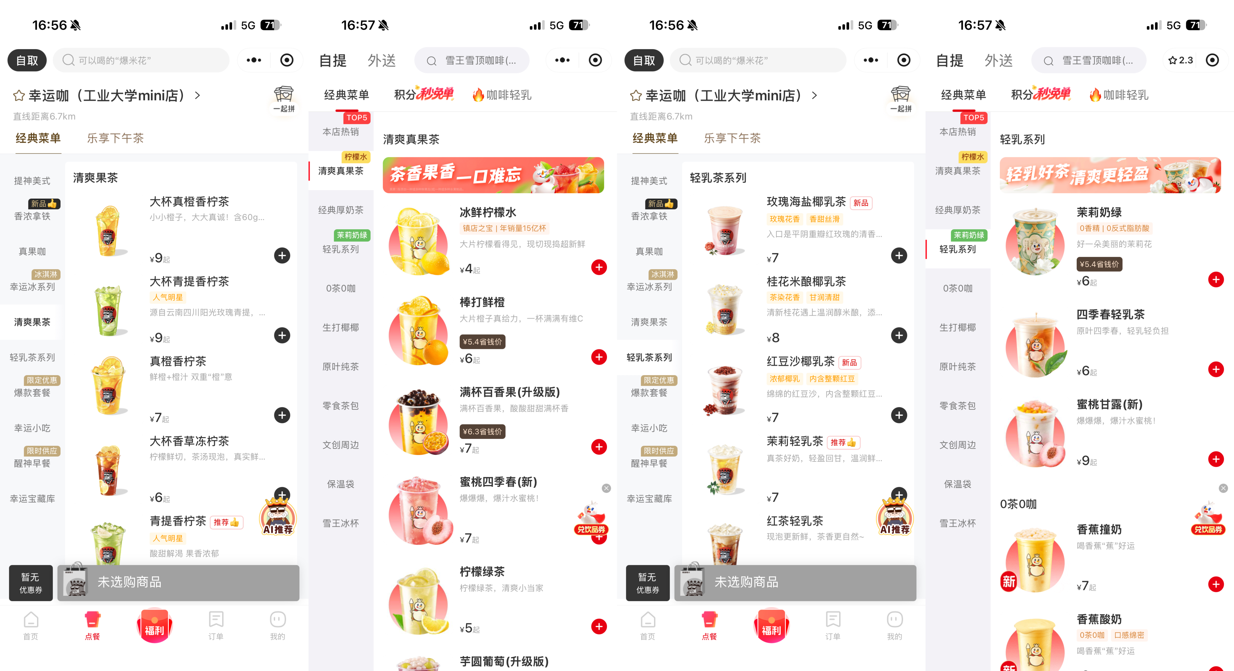 其次,产品和价格带的区隔也日趋模糊。幸运咖的主力产品集中在5-13元,蜜雪冰城在4-9元,存在明显重叠。而且,幸运咖除了咖啡,还销售冰淇淋、果茶、轻乳茶等非咖啡类饮品,直接与蜜雪冰城形成正面竞争。