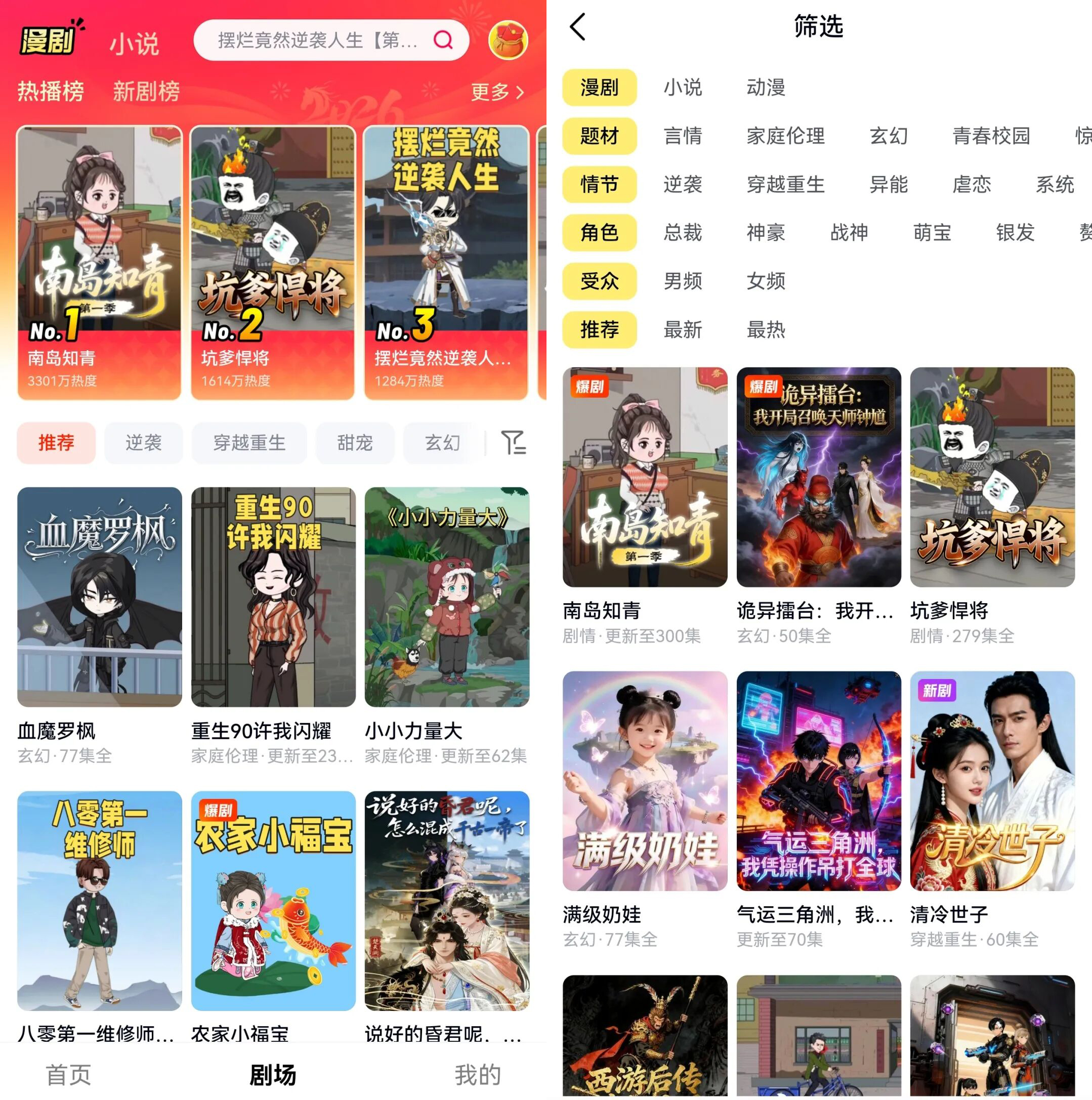 “重生”“开局”“系统”“末世”等高频词汇和剧情,也恰恰击中当下年轻男性的情绪痛点。主角永远能从废墟中站起,系统永远会在绝境中降临,漫剧为其提供了最低成本的代偿。男频网文那套玩法,无缝平移到了漫剧。