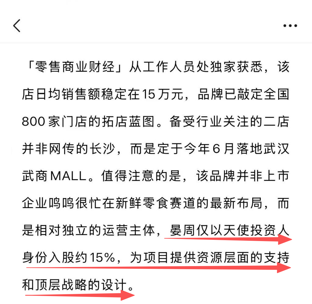 值得注意的是,3月5日零售商业财经的一篇稿子指出,有点推荐由鸣鸣很忙董事长晏周以天使投资人身份入股约15%,为项目资源支持和顶层战略设计。不过,不久这段内容就删除了。