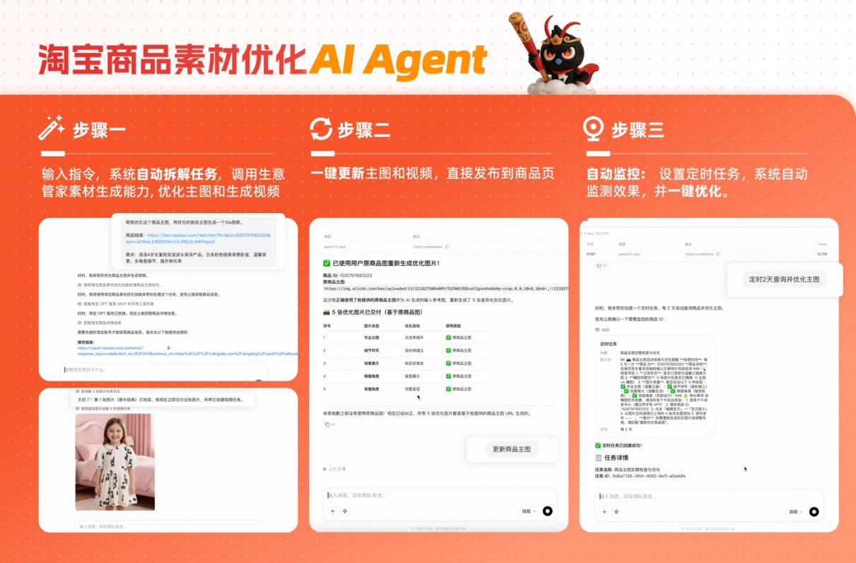 上线首期,支持淘宝商品素材优化、店铺经营周报分析、1688找同款等核心经营领域的“AI员工”将率先到岗,此外,商家还可将自身经营经验标准化为Skill技能包,搭建起满足个性化经营的AI Agent。