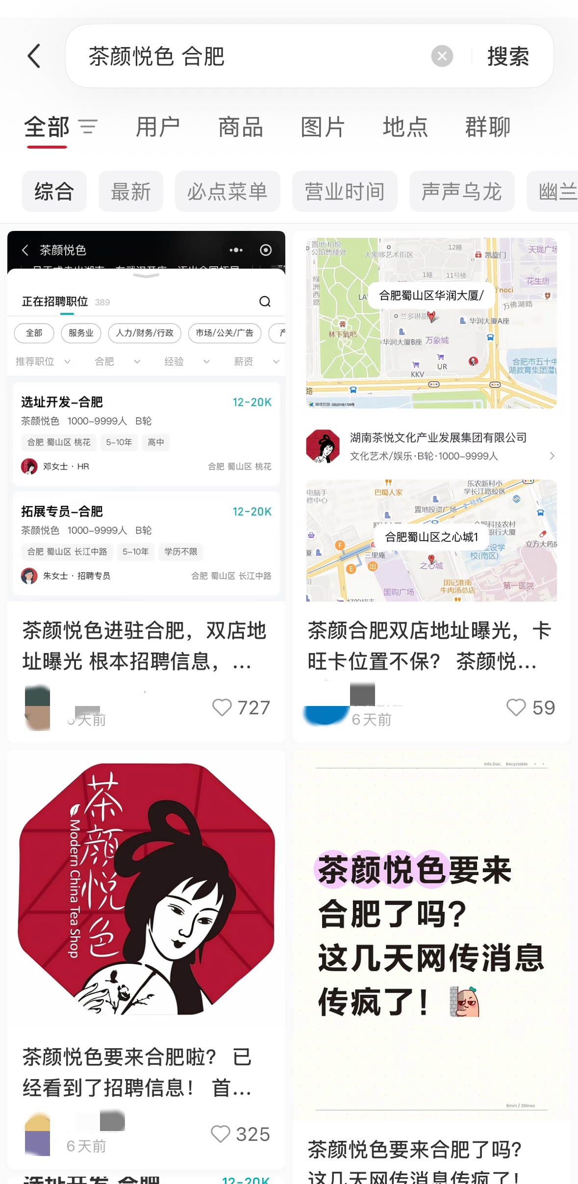 近日,茶颜悦色将进驻合肥的消息在社交平台上流传。称茶颜悦色在Boss直聘上开出位于合肥的“选址开发”以及“拓展专员”的岗位,在合肥的首批两店将位于万象城和之心城。茶颜悦色官方客服对此回应称:“目前没有接到这方面的通知”,未予确认开店信息。