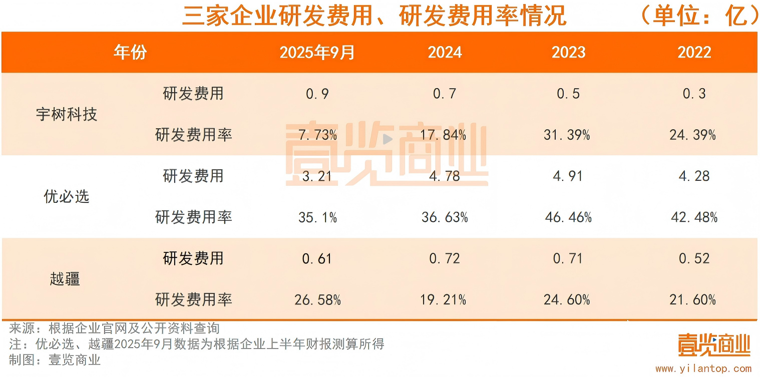 宇树科技的研发费用率近几年呈现明显下降趋势。招股书显示,其研发费用率从2022年的24.39%大幅降至2025年9月末的7.73%。根据招股书粗略测算,优必选和越疆25年同期研发费用率在31.39%、16.35%左右,远高于宇树科技的研发费用率。不过宇树科技解释称,主要原因是营业收入快速增长,收入增速远超研发费用增速,规模效应下研发费用率相对下降。
