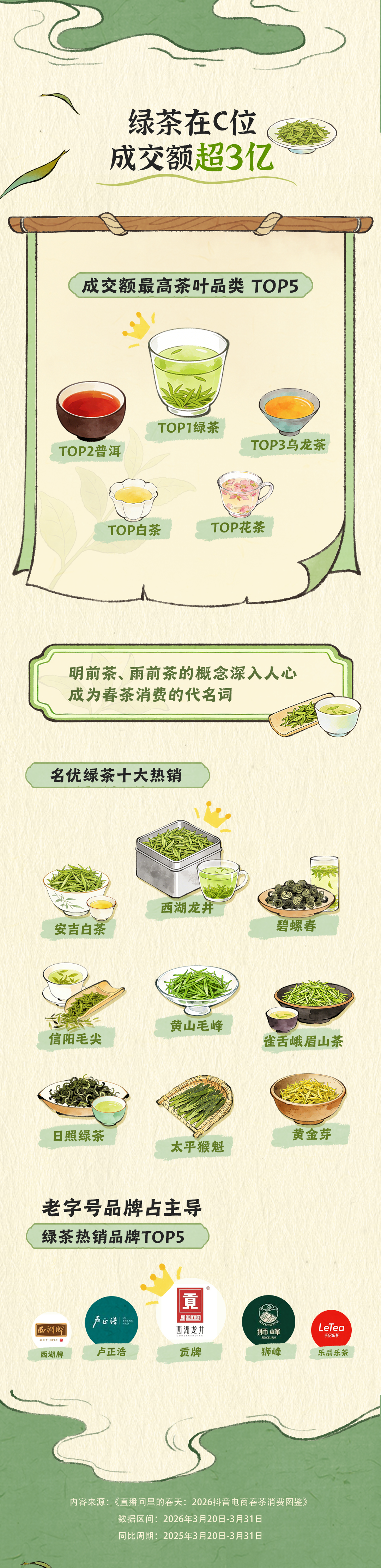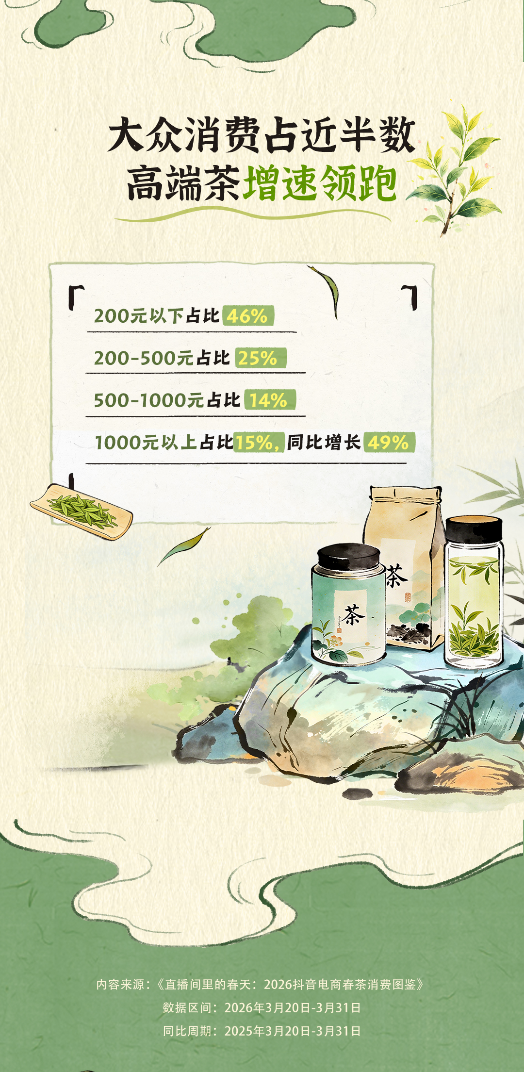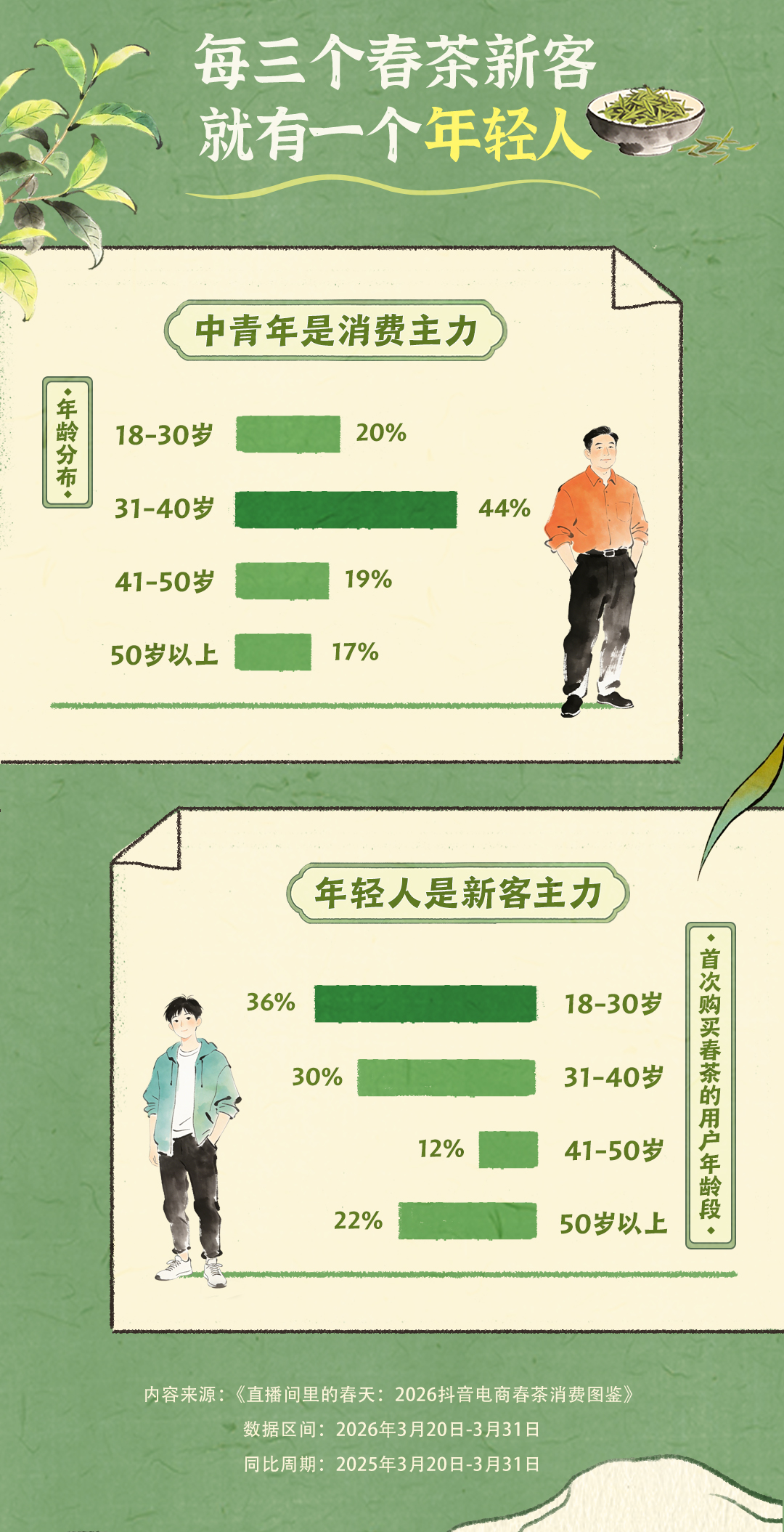 日前,抖音电商发布《直播间里的春天:2026抖音电商春茶消费图鉴》(下称“报告”)。数据显示,2026年3月20日至3月31日,超2.7亿用户走进春茶直播间,话题 #第一口春茶在抖音# 累计阅读量达8.3亿。每三个新客就有一个年轻人,直播电商正在为传统春茶找到全新的年轻消费群体。