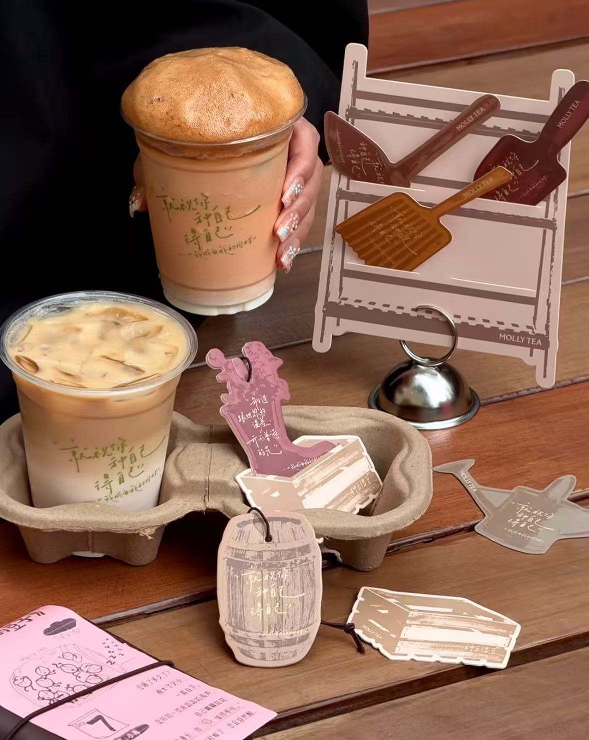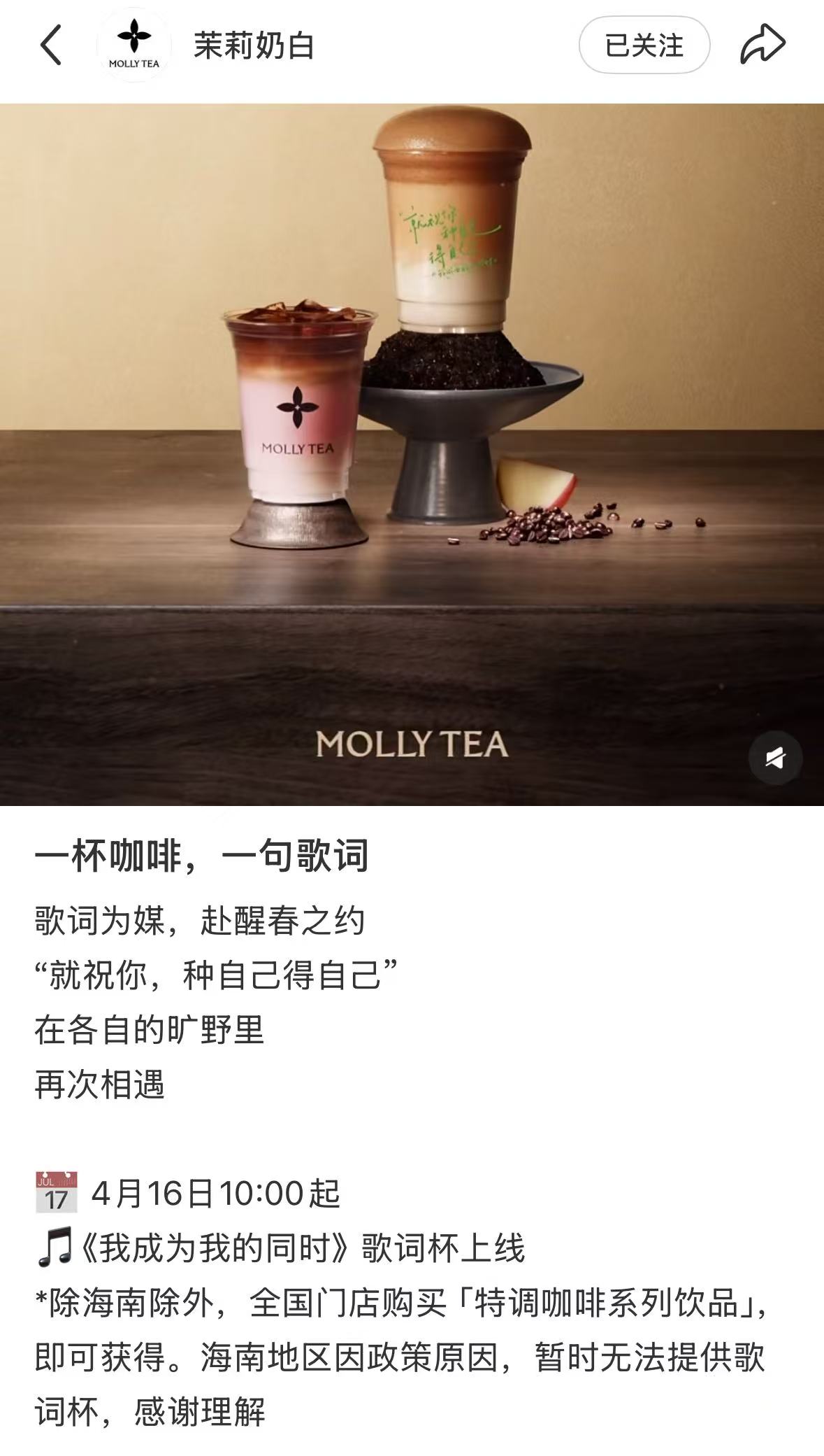 上新同日,茉莉奶白与组合“十个勤天”展开联动。此次合作以“十个勤天”团歌《我成为我的同时》中的歌词“就祝你种自己得自己”为内容载体,推出“种豆得豆”主题歌词杯。