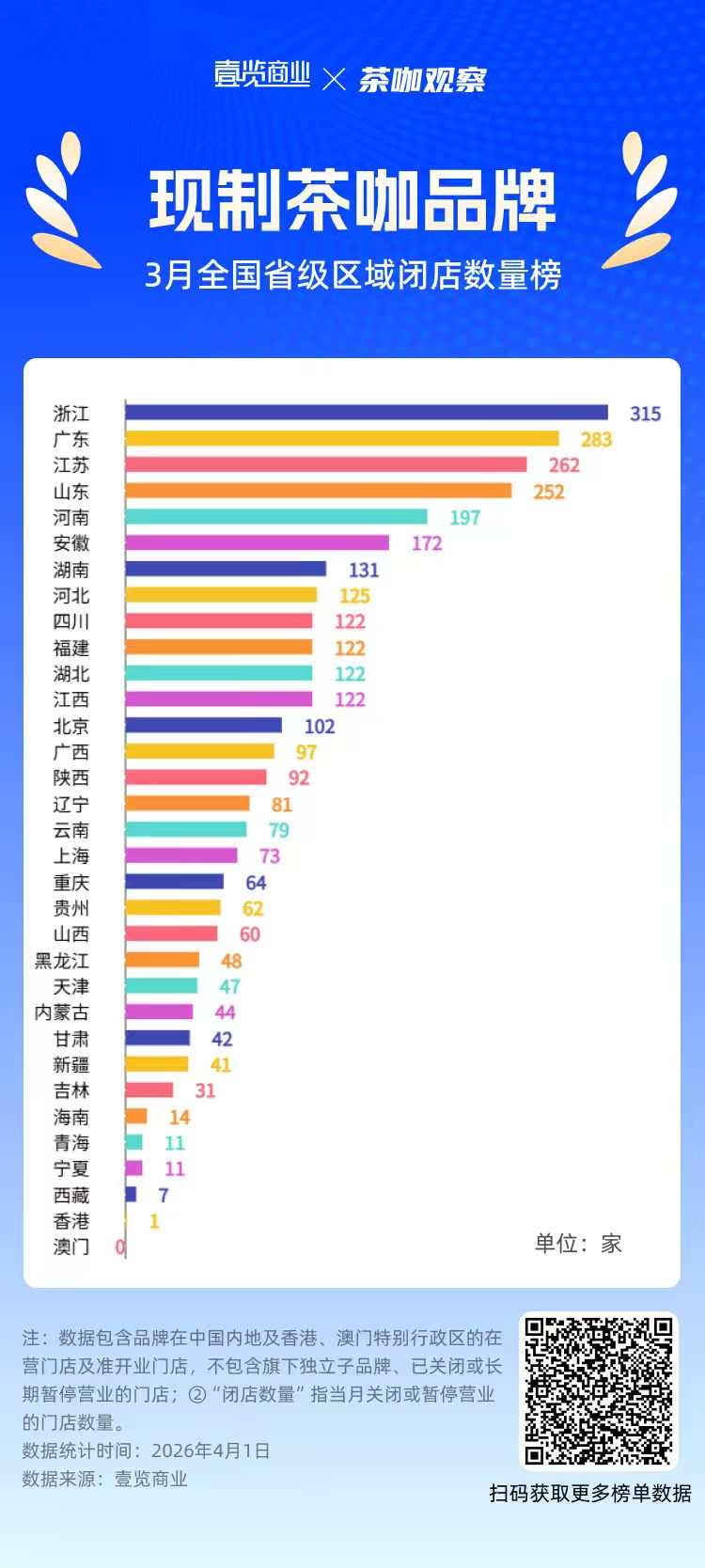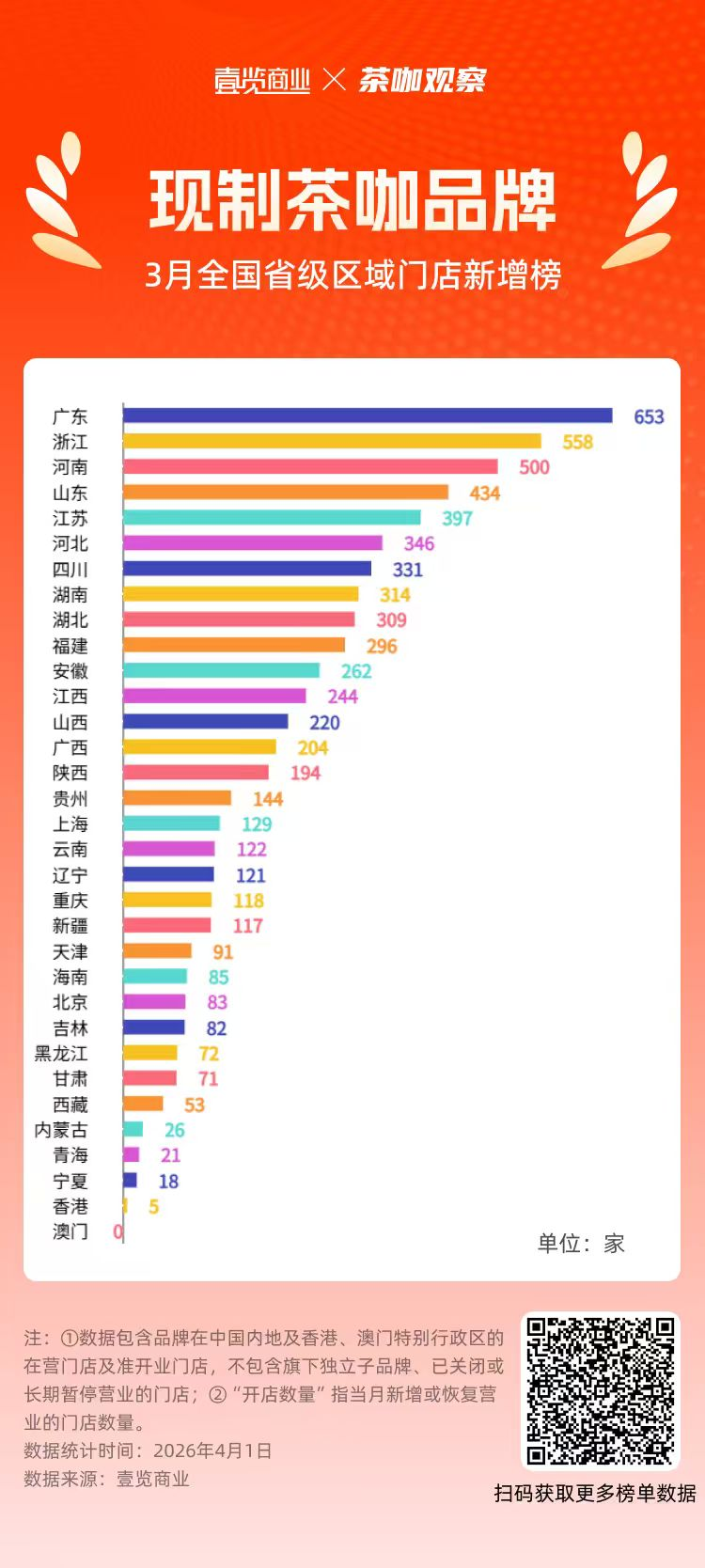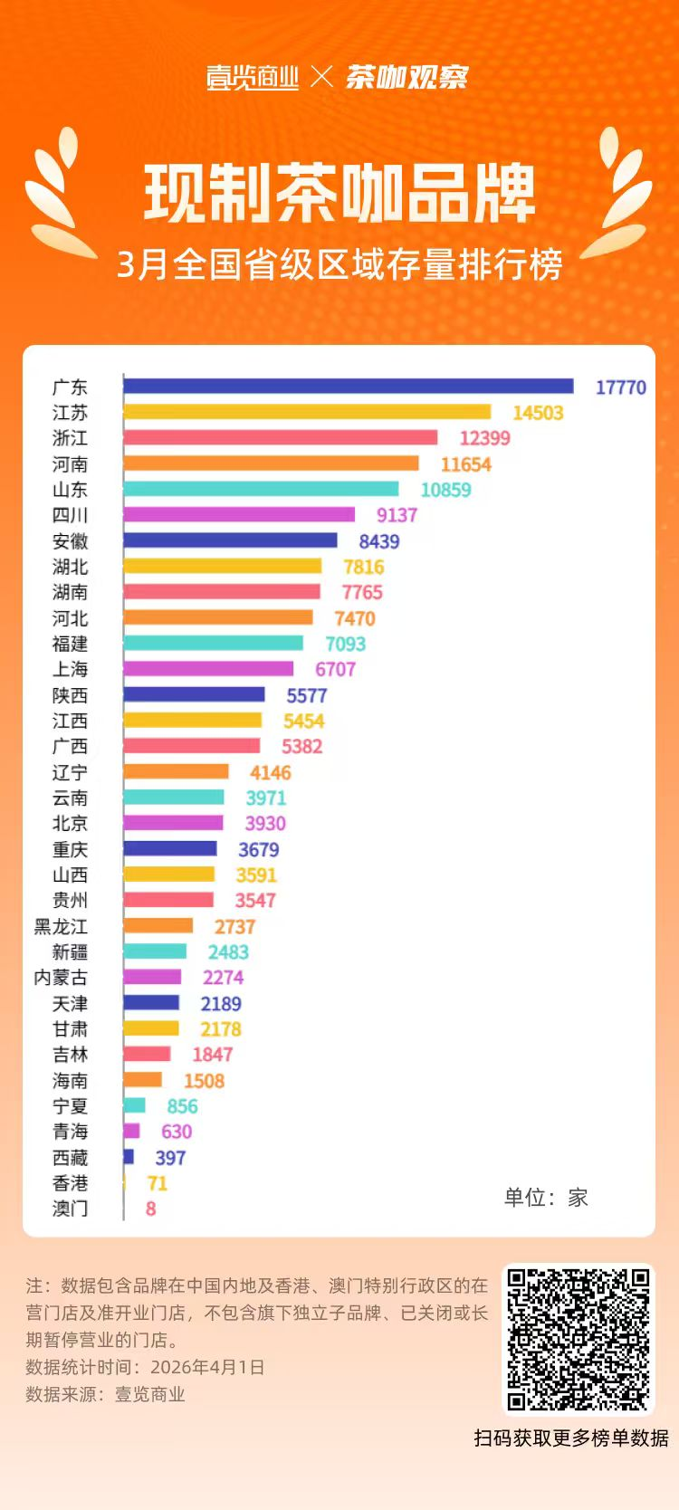 在我们最新发布的《中国现制茶饮行业月度报告(2026年3月)》完整版中,我们还深度拆解了48个品牌的区域拓展全景: